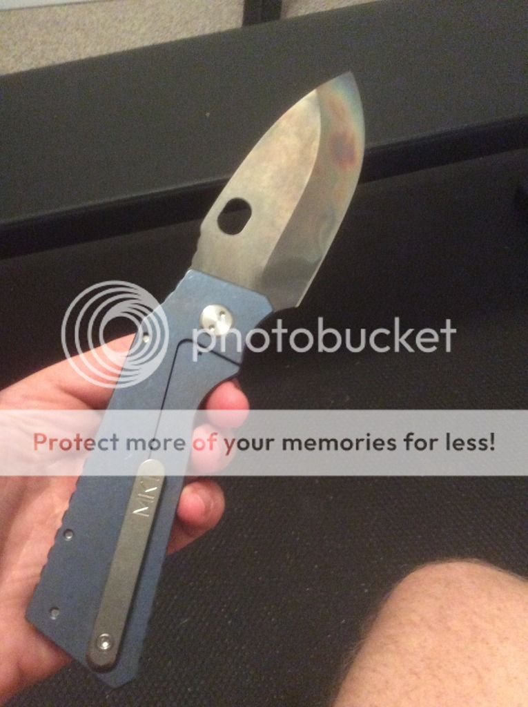 This one has been carried a few times and opened a few boxes. It has a really nice looking Vulcan finish blade and a blue anodized lock side from the factory. It has never been disassembled or sharpened. It comes with the Medford pelican case as seen in the pictures as well as the paperwork from the factory. This one has very Strider like ergonomics but is built much better in my opinion. I'm asking $old and I pay the Paypal fees and shipping.