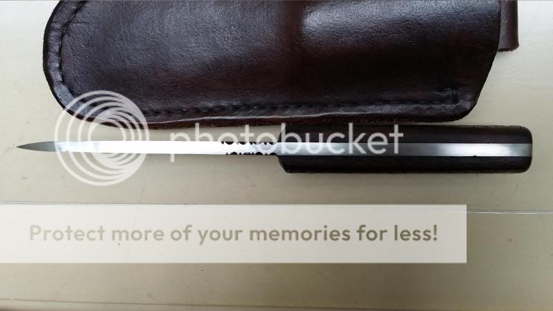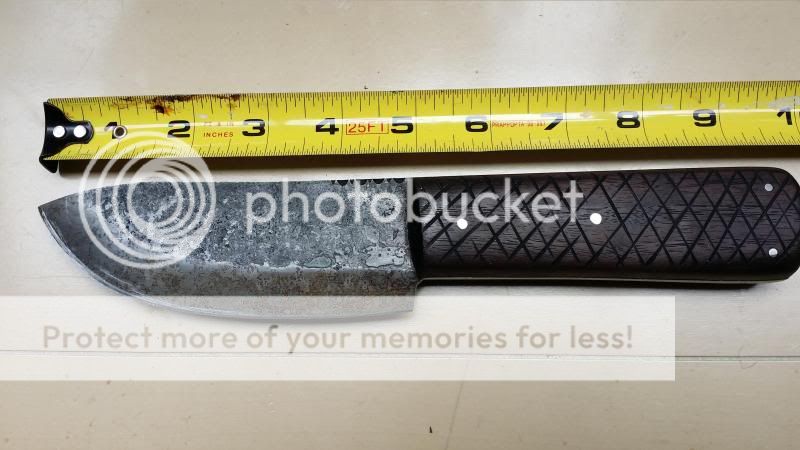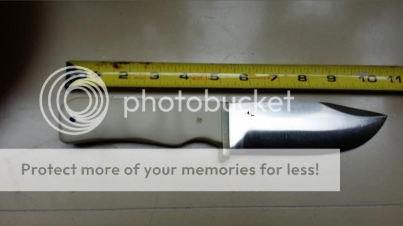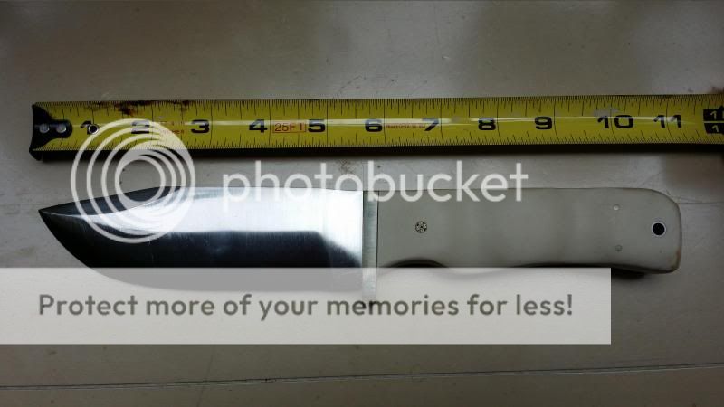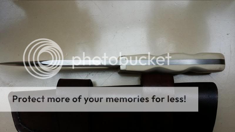 2) Stout short bowie knife with ivory micarta grips, convex grind, unsharpened clip and sheath (shown on the right in pictures below). Price: $SOLD includes priority shipping with tracking.
