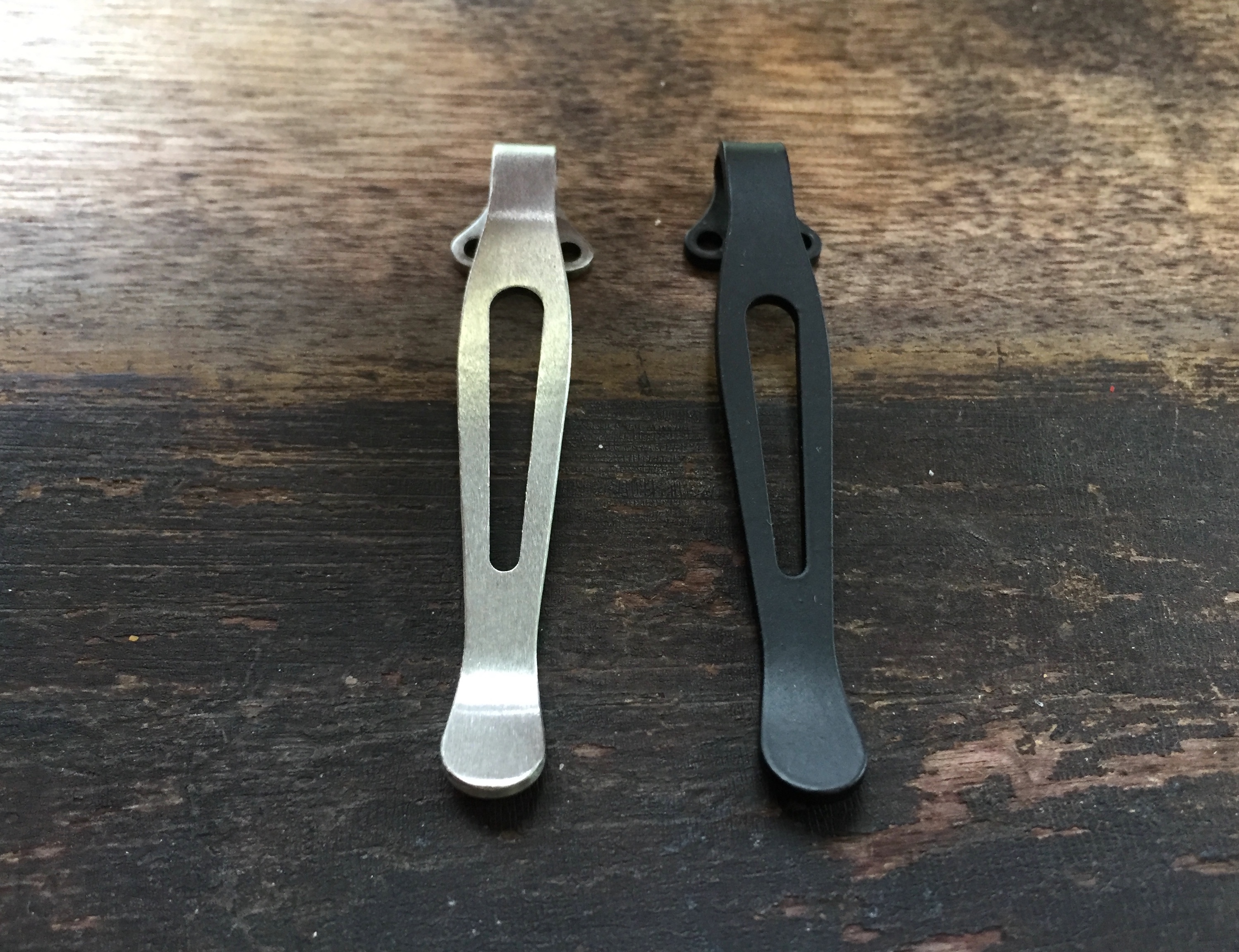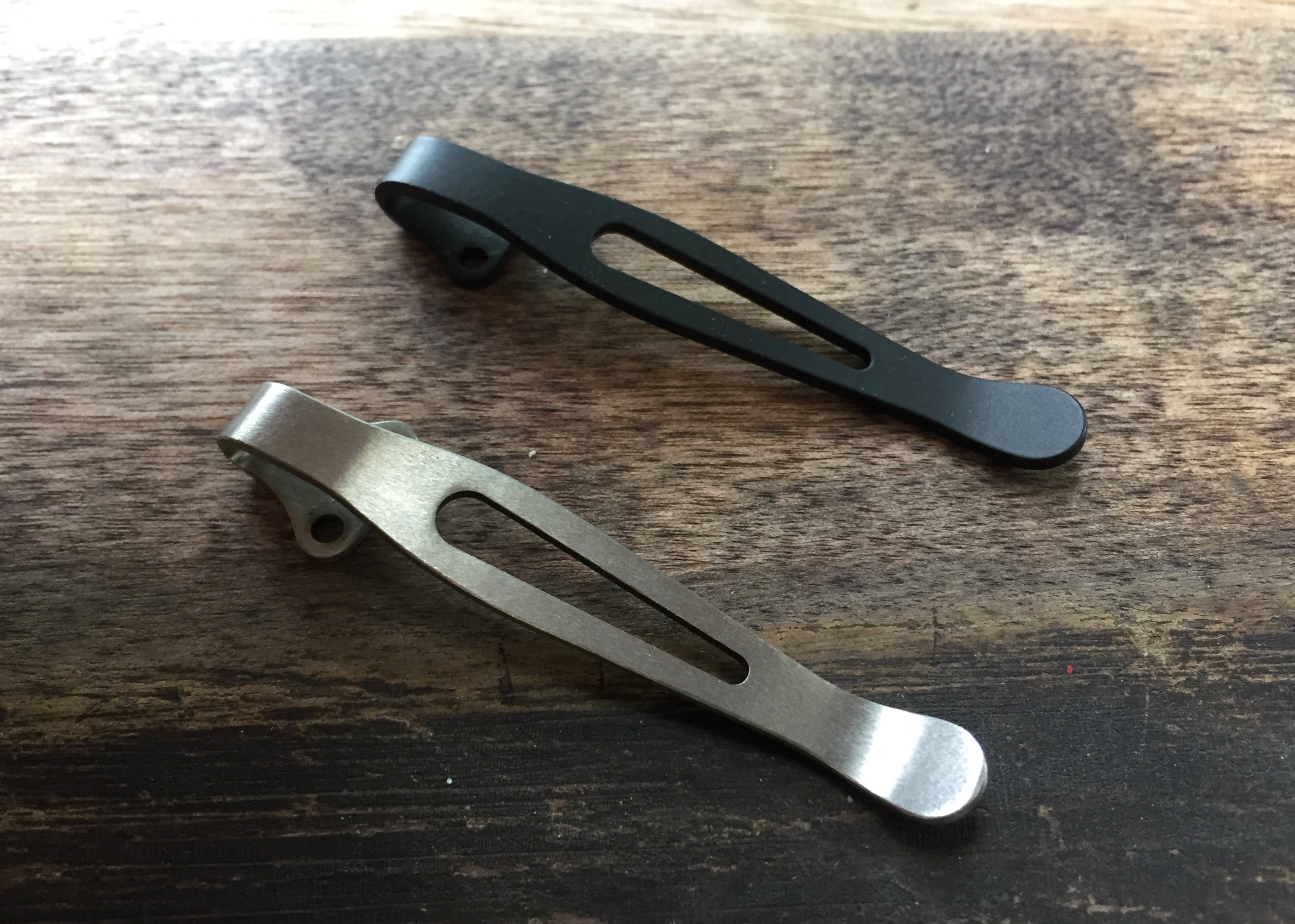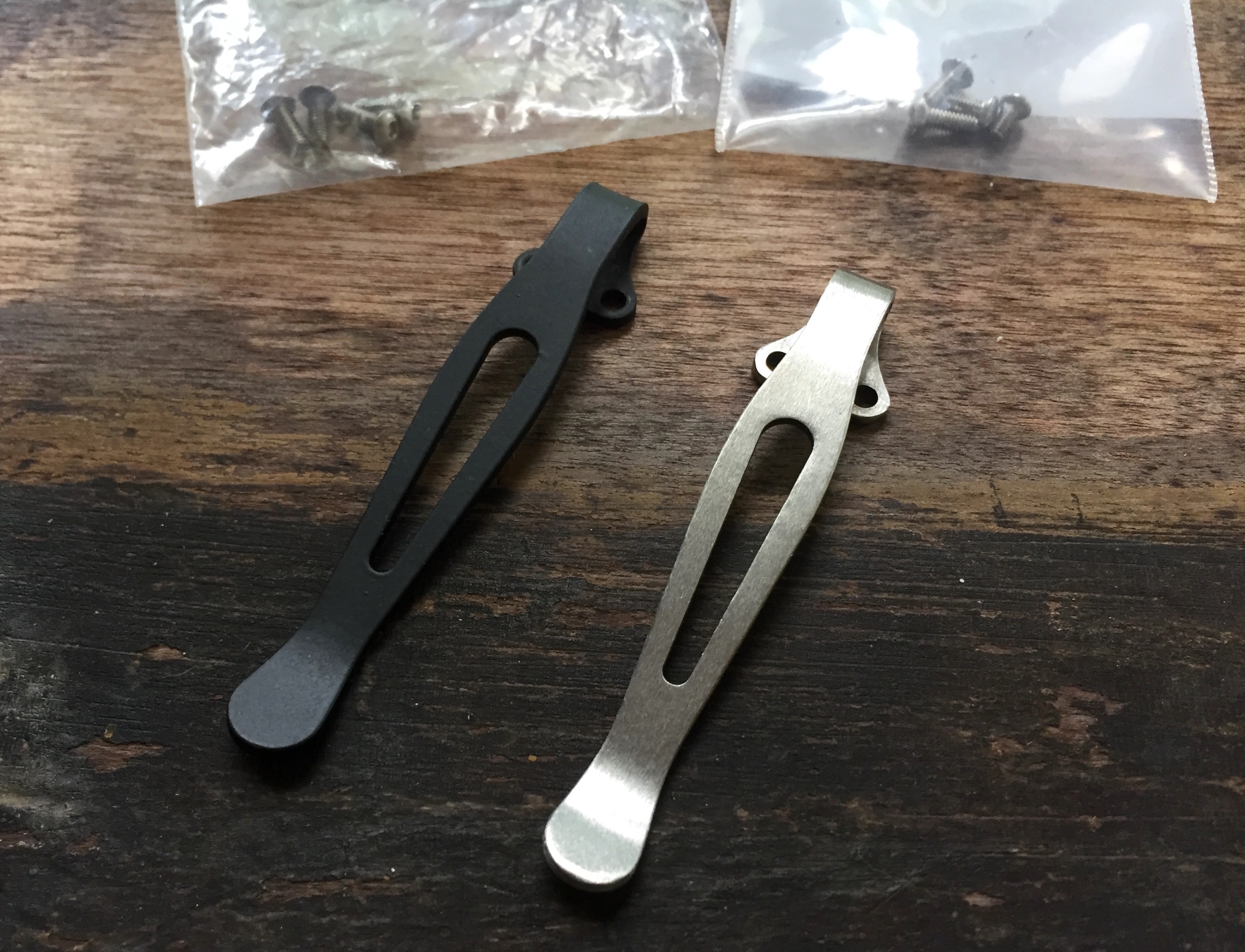 Nearly new condition. Each of these were installed on a knife I never wound up carrying. Made in the U.S. from 6AL4V titanium. Each includes two pairs of screws.