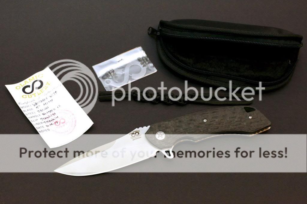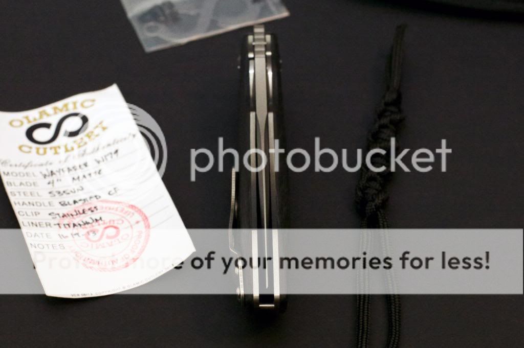 Brand new and in the pouch with tool, certificate and lanyard. This flipper flips faster (say that fast three times) than any other knife I've had so far! It is lightning fast and incredibly smooth. Has only been flipped a few times and hasn't even cut paper yet. I usually carry the knives I buy but can't bring myself to carry this one. Blade is centered and lockup is great. It came from Olamic with sharpie on the lock face so it must have been sticky to start with but it isn't now. This knife is perfection and I'll be sorry to see it go!