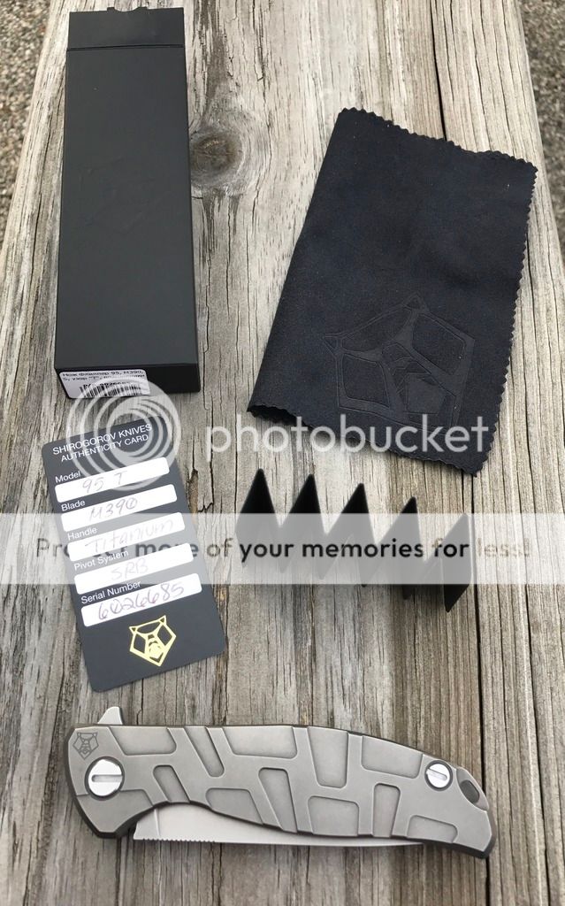 Up for sale today I have a brand new in box Shirogorov 95T in M390. I purchased this knife from directly from Recon 1 about a month ago and it has been in my climate controlled safe ever since. The blade is dead center with a razor sharp, untouched factory edge. Lockup is early and rock solid.