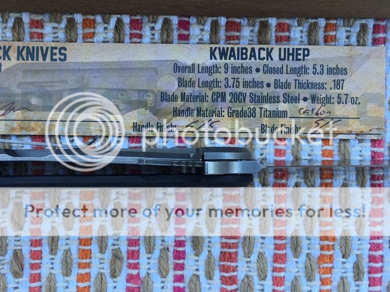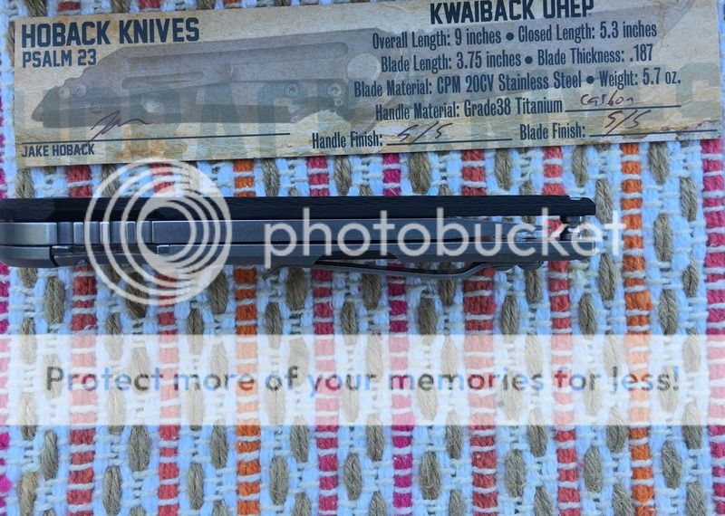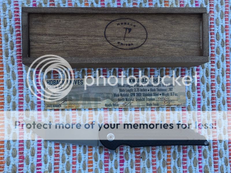 Hoback Carbon Fiber Kwaiback has been carried 2 or 3 times and not used. Everything is as new from Jake. Knife is razor sharp, locks up dead solid no play, flips fast, and blade centers. No issues whatsoever with this knife. This is one of the first 50 numbered knives with a unique psalm number engraved on it (#12). Includes all packaging and birth card. This knife is very light for its size it only weighs 4.6oz!