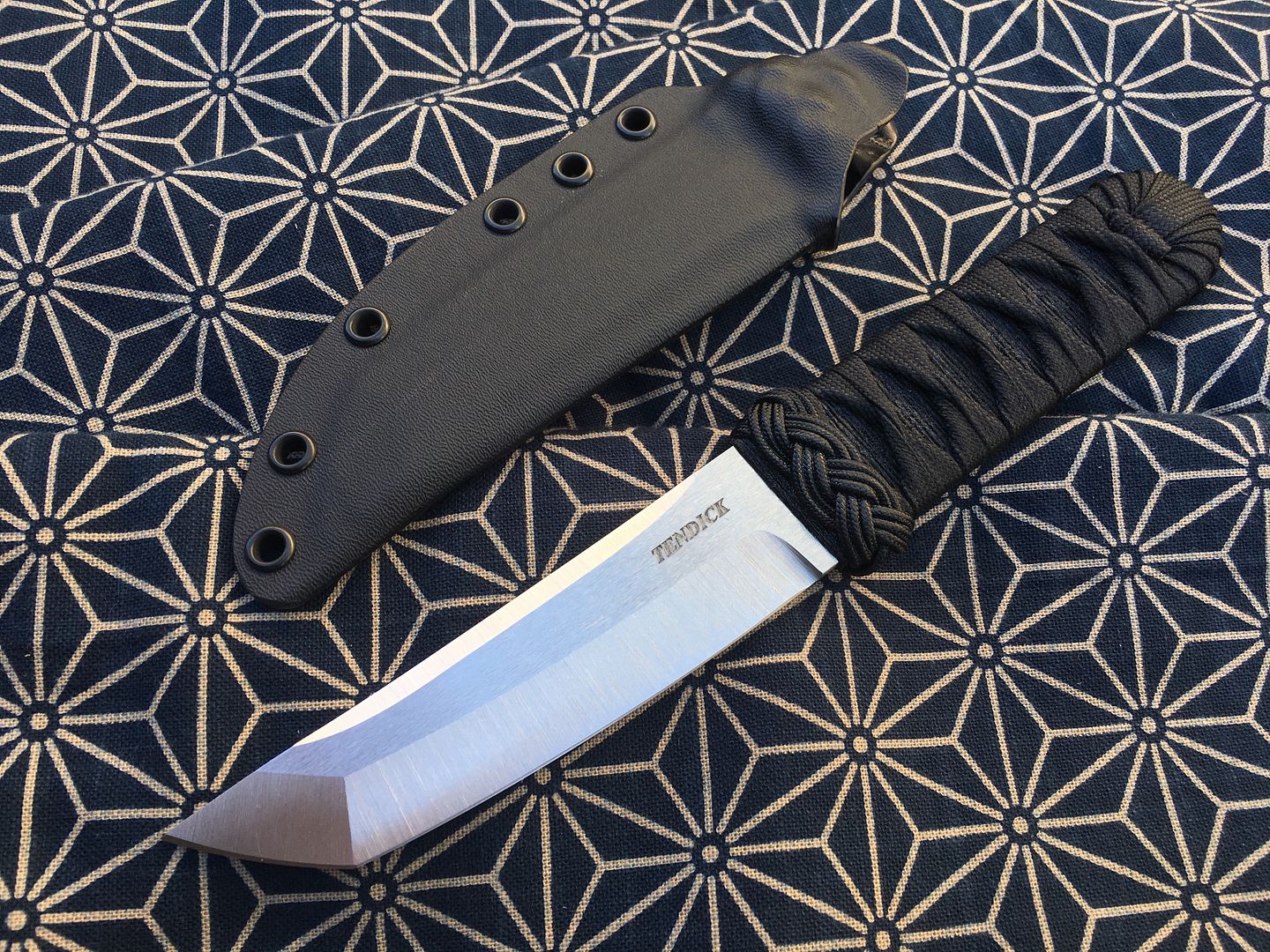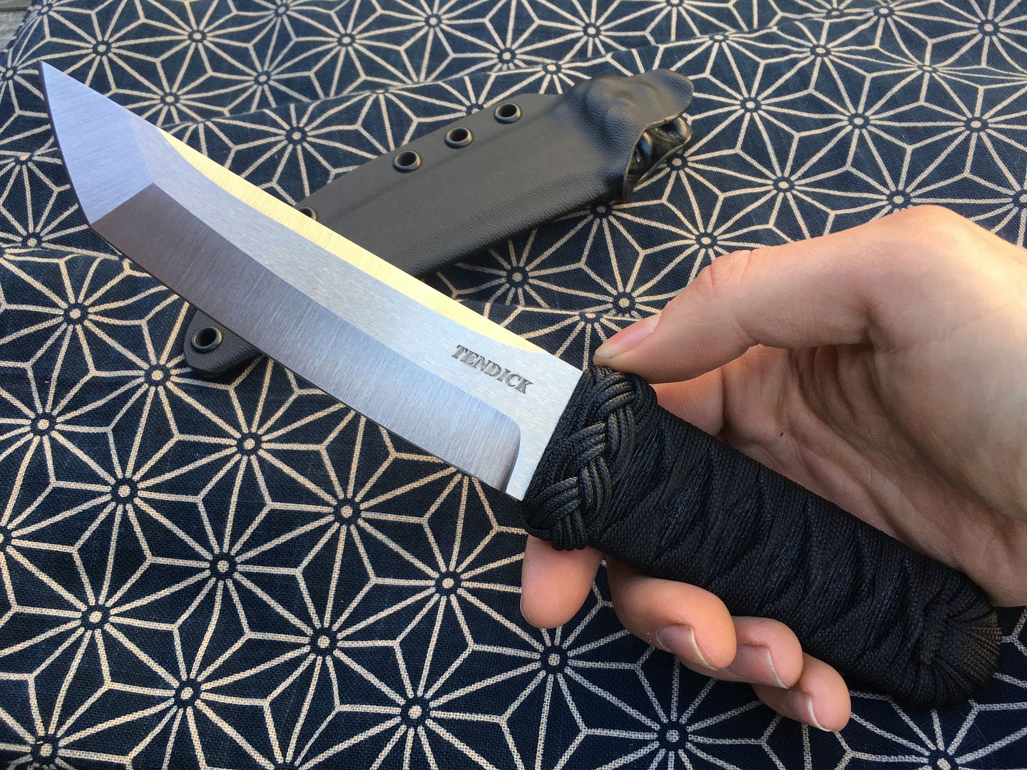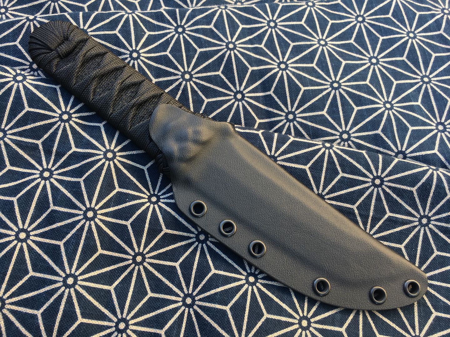 Handle - Tsuka Ito soaked in marine grade epoxy. It is solid and very durable