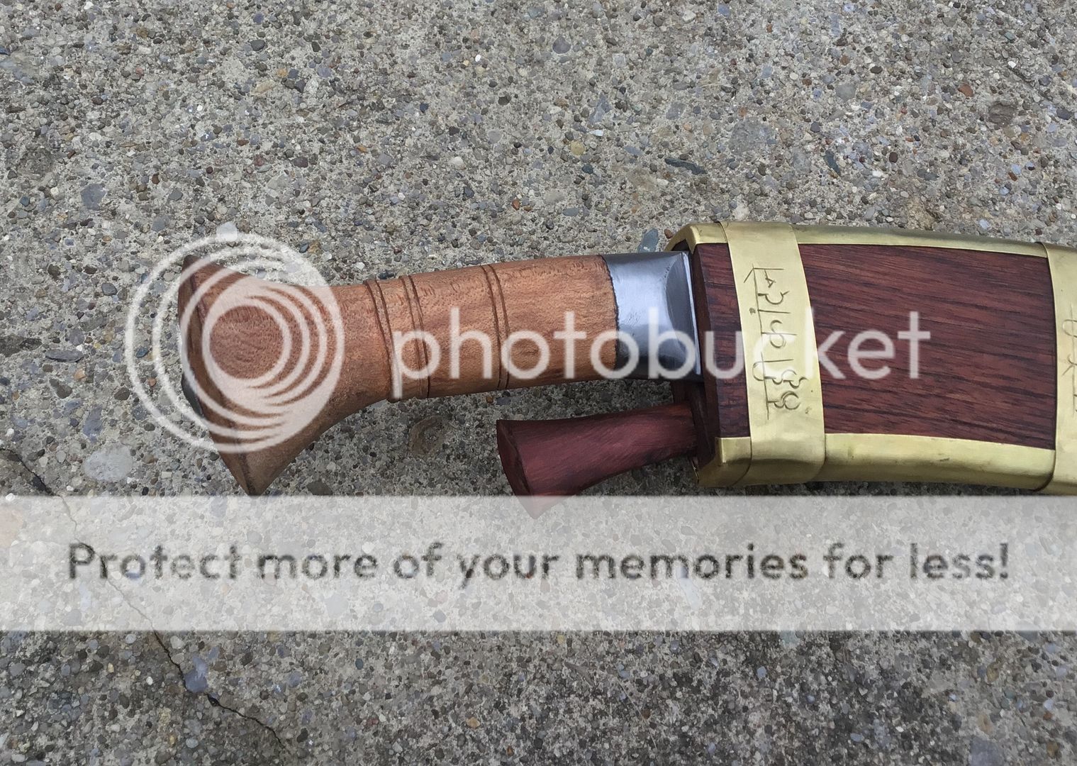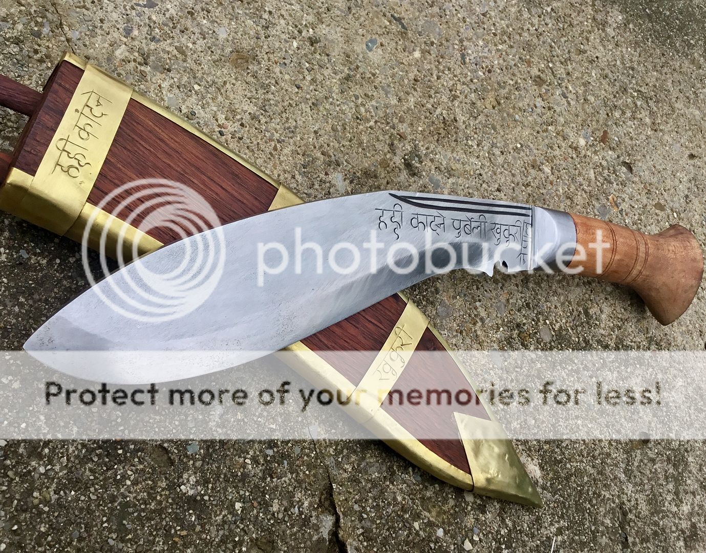 Beautiful Brass inlayed wooden sheath. Comes with basic Karda and Chakmak. White metal fittings.