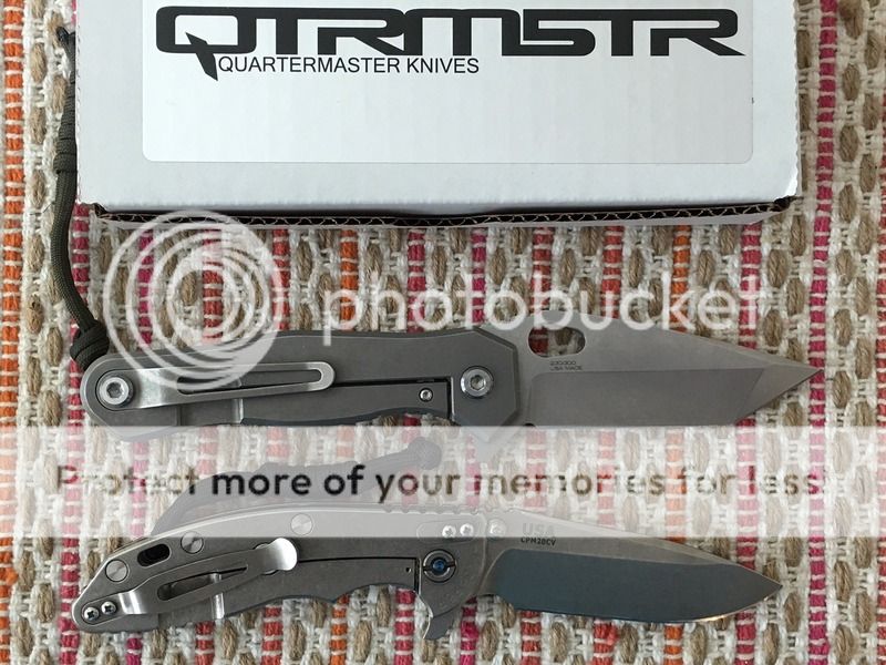 Quartermaster Roper Eviction Tanto #230 of 300 made. This knife is a beast with a .20" thick blade but weighs only 5.1oz due to internal lightening pockets milled into the titanium frames. It's like new only carried a couple times, but not used and shows no signs of use or carry.