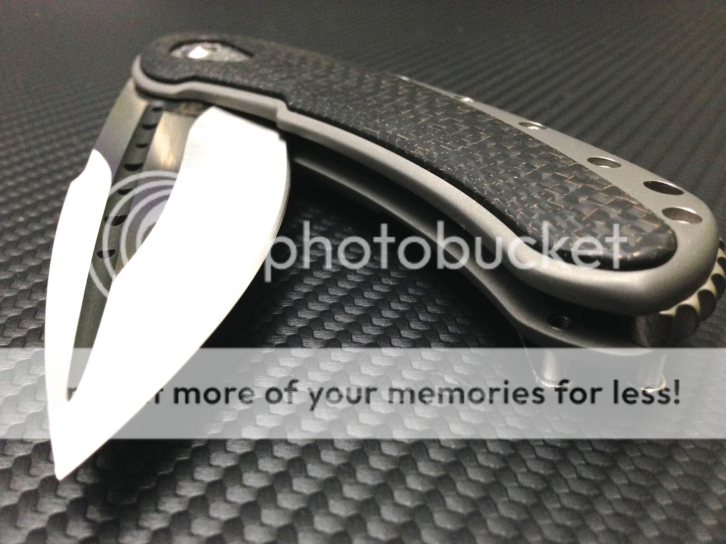 Up for sale is one of my prize possesion. My very Rare Lightning Strike Carbon Fiber Bodega Flipper. This one has "USA" on the blade which was only produced on the 1st 60 with the USA logo. Unfortinately the USA was replaced with the word "Design" which is now produced on the current models. This one is very sought out and is very scarce. Flawless Bead Blasted frame with gorgeous Lightning Strike Carbon Fiber inserts.