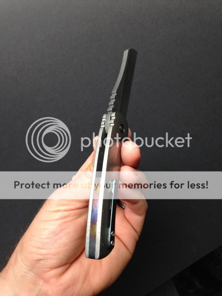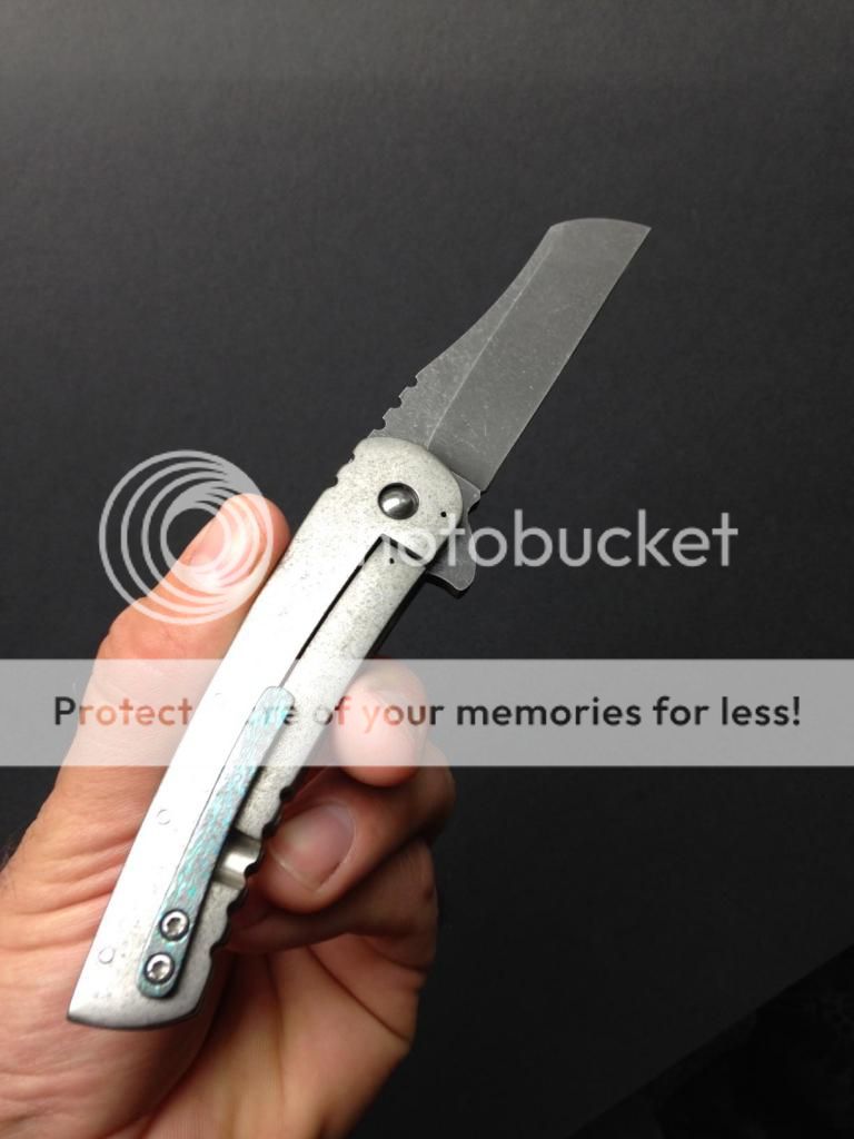 Catch and release for me. Gorgeous knife. I have several other folders coming in and dont think Ill be keeping this one. The blade is 4v and it has a timascus backspacer and black timascus clip. Its got great detent, wicked flipping action and very early and solid lockup. Its engraved #3 on the inside of the frame.