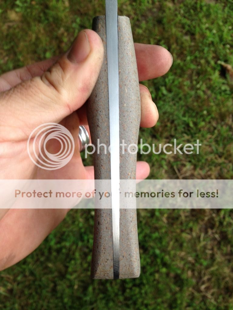 A blade forged from a pre 60's leaf spring that I have made several blades from and trust its quality I assume its 5160 and heat treated it as so. Full quench double tempered and a back draw. 9" blade with tapered tang and TREX handle material to keep up with the recycled vibe. Brass hardware and a multi-carry sheath rigged for shoulder carry and bushcraft slap style. finished in 320 grit finish, a great use and abuse knife. Sold-plus shipping this should be a $500 set up, trying to move it fast