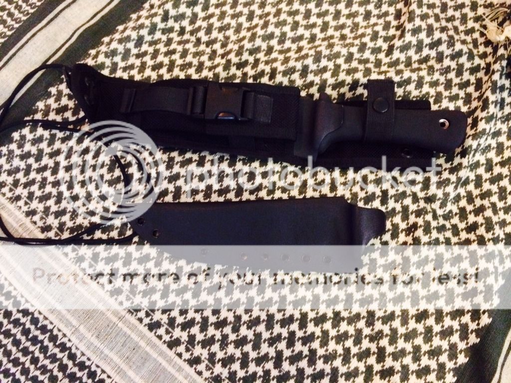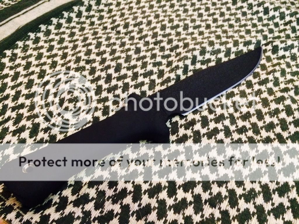 Military overrun regulator with the black crinkle coat finish. It is unused, but didn't come sharp from Scrapyard, so I put a wicked edge on it, it will shave arm hair, no problem. Comes with the factory sheath with a custom kydex insert for good retention even without the snap. Also includes a kydex sheath without any mount on it, so you have some carry options. $180 Shipped CONUS, paypal payment preferred.