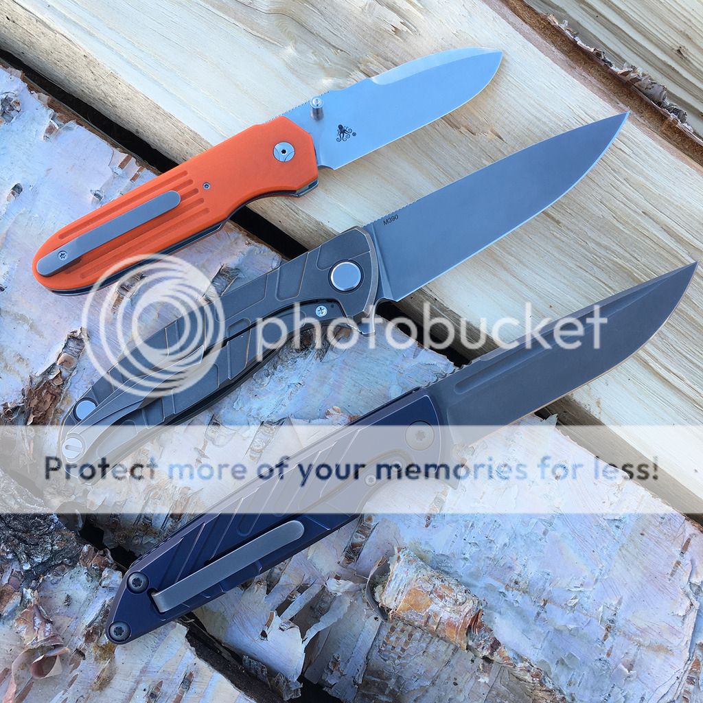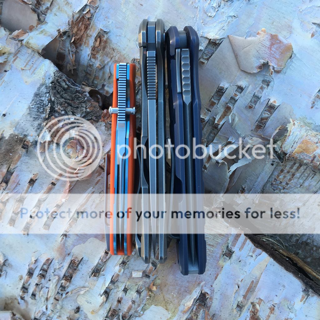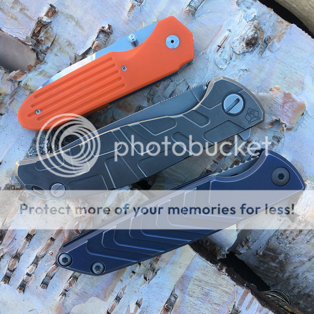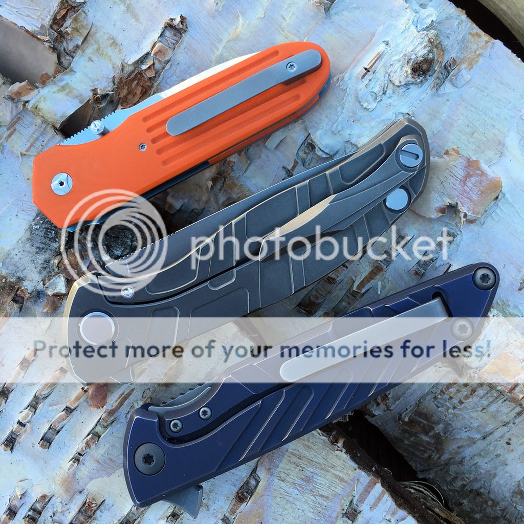 Got this direct from Brian and love it. Blue ano on frame and I paid extra to have him put the fuller grooves on it. I carried and used it lightly. Snail trail on clip and maybe slight wear on the ano on the corners where it rubs on my pocket (hard to tell) and that's about it. Excellent condition and no issues whatsoever.