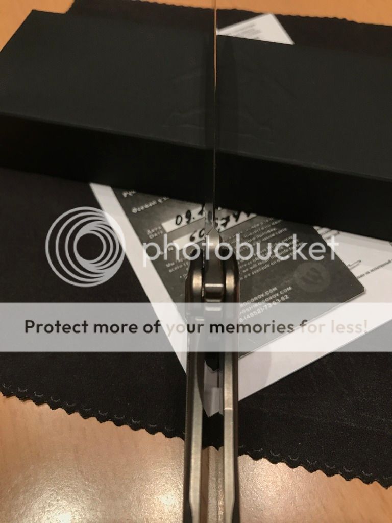 My knives has only been taken from the box for real photos. Comes with the factory box, cloth, and certificate. All great in knife - no defects. These knife lot of manual work - so they may differ in treatment.