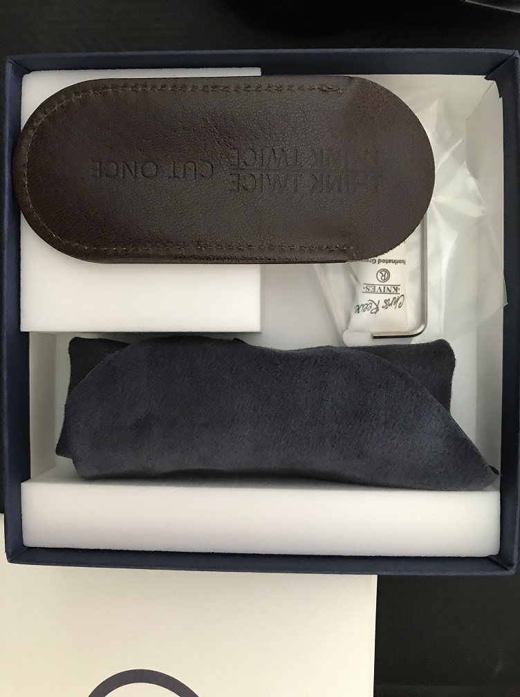 The knife has been carried once in a pouch ( Not original one included with knife but a spare one I have ) but has not cut anything. The Knife is in mint condition and comes in original CRK box with tools, grease, paperwork, cloth and leather CRK pouch.