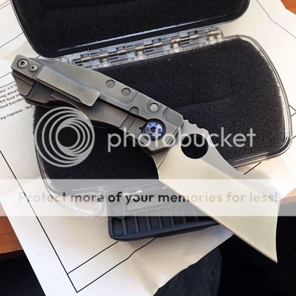 This Butcher was made this year and is just fantastic. The details on it are superb. It was $1250 direct from Dave and is unused and uncarried. I'm including the Otter Box case along with the original invoice. Action is great; lockup is rock solid with no play; and blade is centered and very sharp.