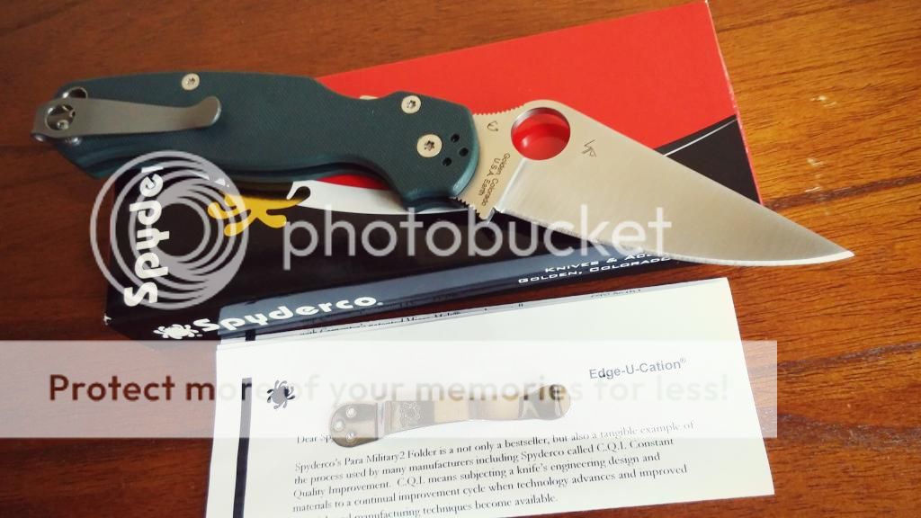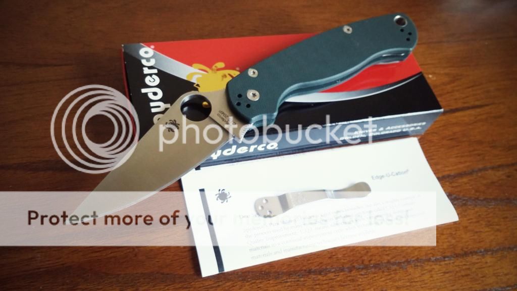 Up for sale is my sprint run Spyderco Para Military 2 with dark green scales and CTS-204P blade (Knifeworks Exclusive). Part # C81GPGR2 I am the original owner and it was carried a few times but only used to open a few envelopes. It is in excellent condition and still has shaving sharp factory edge. Blade is perfectly centered when closed. It comes with box, papers and Casey Lynch's titanium deep pocket clip as well as the original clip.