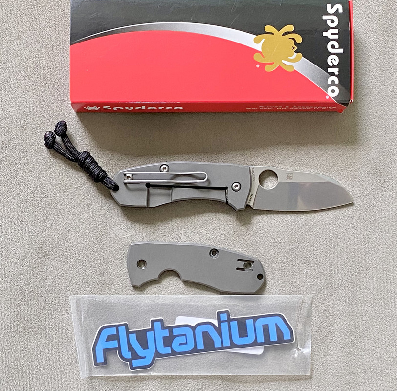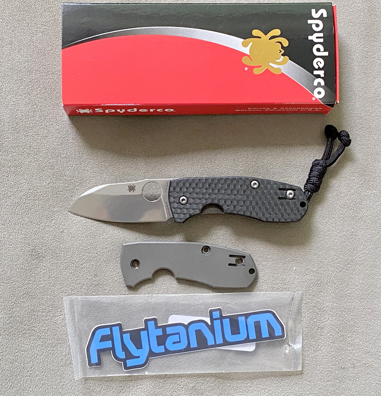 This is a BNIB Techno 2 that I also purchased a Flytanium Carbon front scale for ($40). Knife has been handled but not carried, used, or cut. This is an awesome set up which weighs about 2.5oz and is rock solid in every way, but I find I won’t carry it I just prefer my larger knives.
