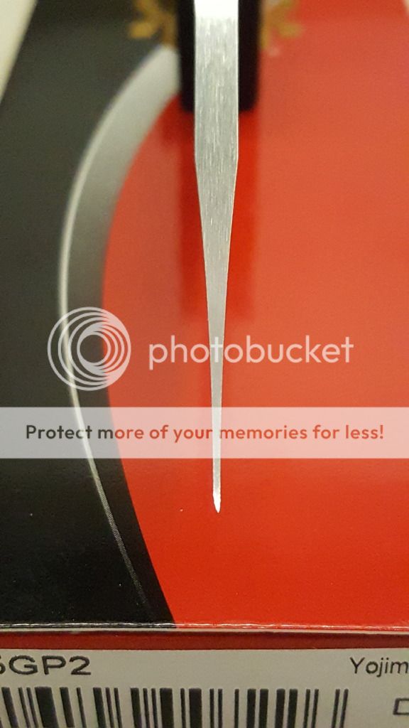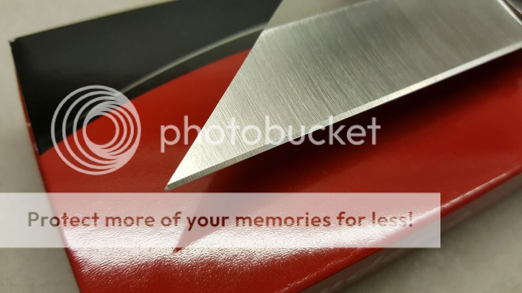 This is a catch and release. I bought it off here in December. Only carried it a couple of times so I am letting it go to someone who will appreciate it more than me. The blade came razor sharp. My only use was testing blade sharpness on paper and arm hair. It is like new with box and paperwork. Blade is perfectly centered. There is a tiny inperfection on the blade tip which is hard to see unless you tilt the blade in the light a certian way. I tried to capture it in the photos. It looks uneven as if the previous owner sharpened it more on one side.
