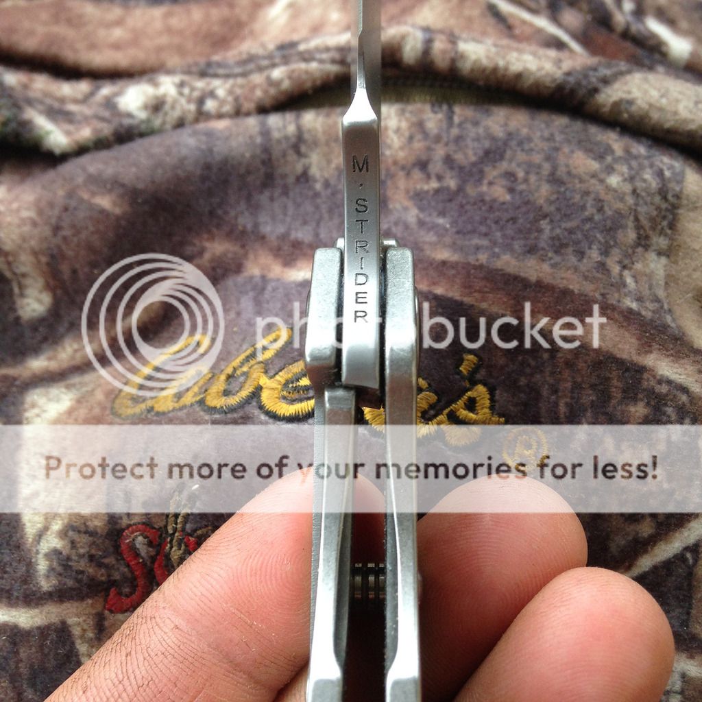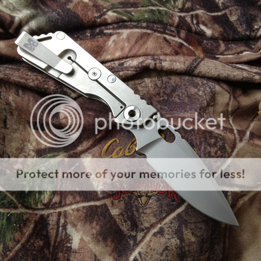 Lightly used Strider Performance SNG. Has a couple of marks on the blade but they're not bad. Just cleaned and lubed it and she's smooth and ready to carry! No play, lockup is solid and blade is centered.