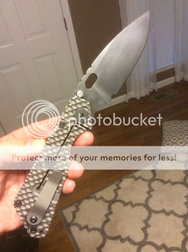 This one has been carried some and used a couple of times. It still has the factory edge. The blade has a really nice looking black coating over the PD-1 tool steel. The thumb studs have a few marks from the factory installation. This knife is in great condition overall and not far off from new. I'm asking $old and I pay the Paypal fees and shipping.
