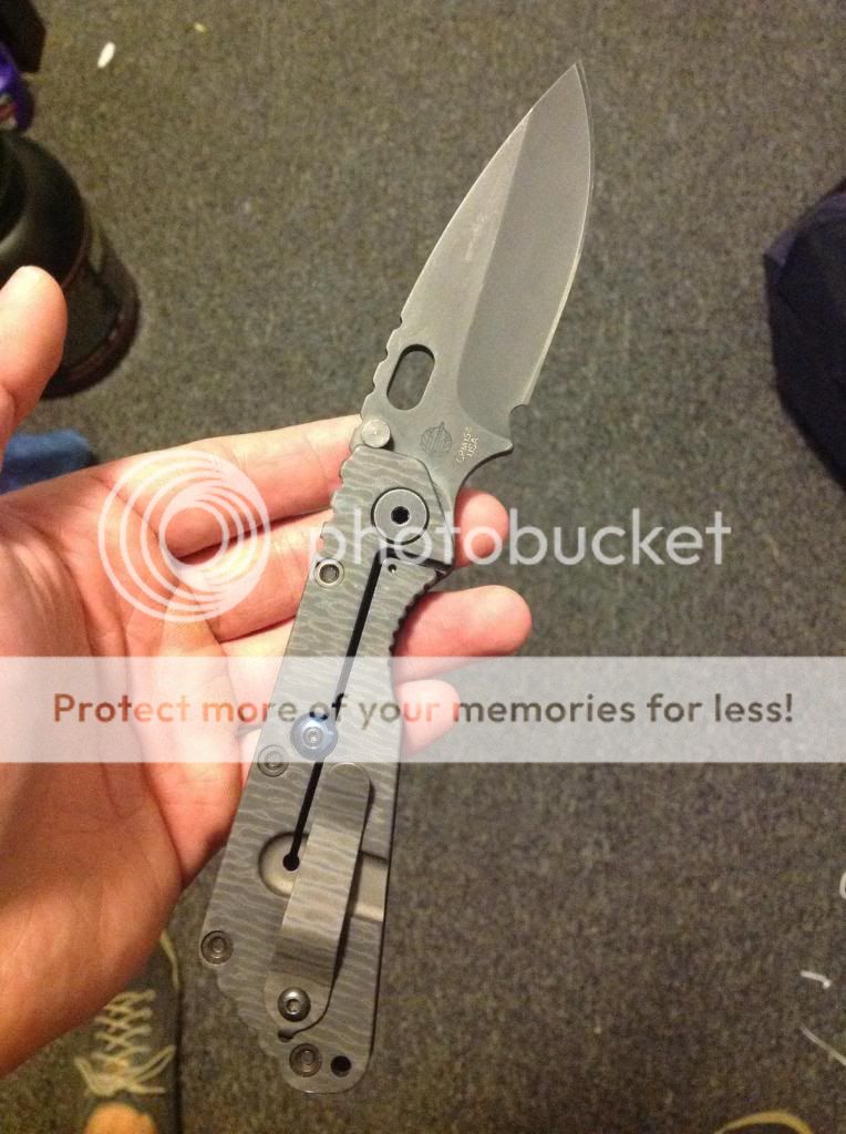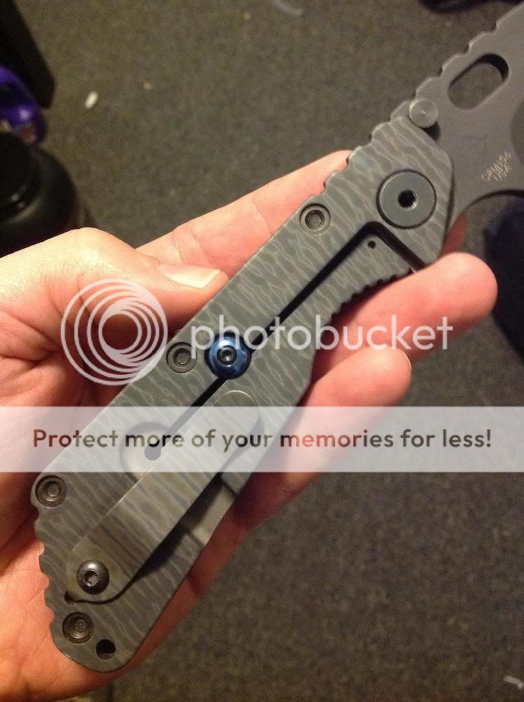 Up for sale today is my Strider SMF with a Pete Gray polished blue titanium LBS included. This knife has been carried and used some. It is in great shape and the flamed finish on this one is beautiful. The blade has a black oxide coating and is hair popping sharp. The lockup is rock solid with no play so anyone who has second thoughts about getting a Strider because of the lockup should hop on this one. I'm asking $old and I pay the Paypal fees and shipping. The only trade that I'm really looking for would be an for an XM18. Thanks