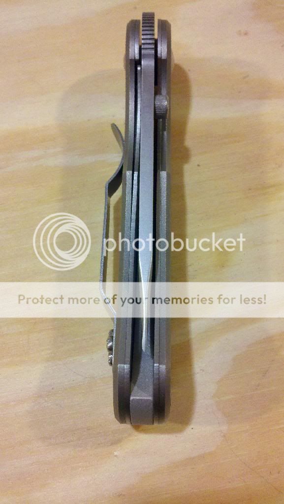 This is an old kershaw. The blade was scratched up so I bead blasted the whole thing liners and all. (Liners had some corrosion so i blasted them too). The pocket clip was sharp so I filed down the sharp edges. Blade has been sharpend quite a few times. Blade length is 2.75". Handle length is 4". Ats34 steel. Lock up is solid, no blade play at all.