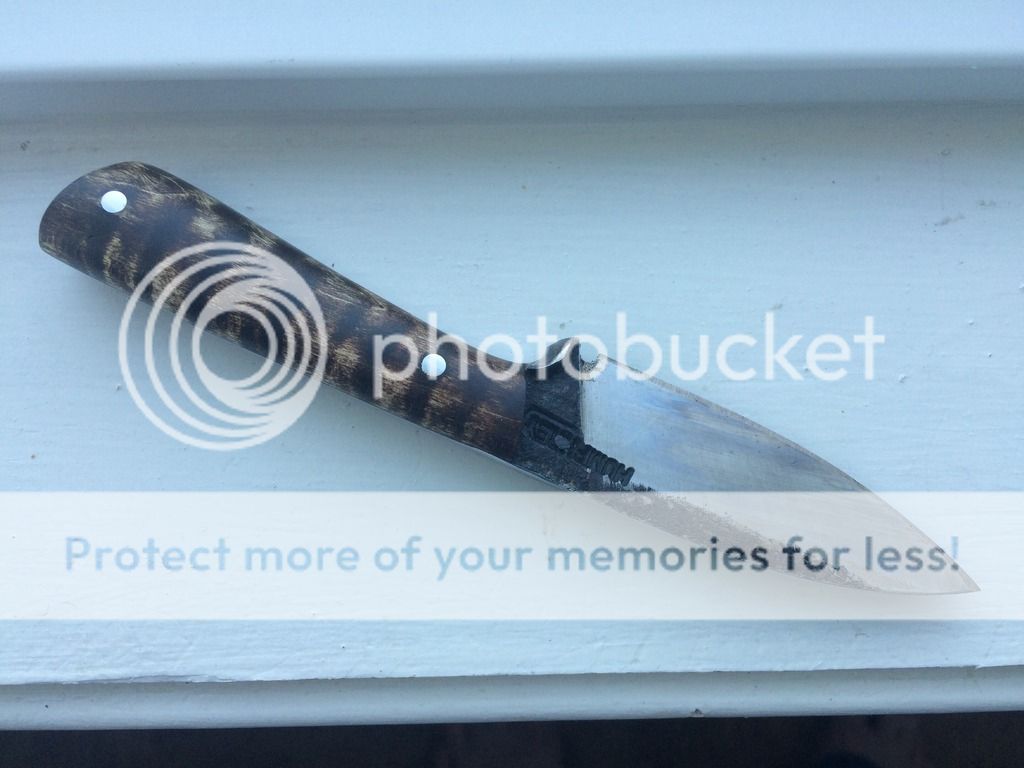 Lon Humphrey Whitetail w/ Maple - Barely used, edge touched up once, some patina - No sheath - & - HI (I cant remember the name of it) Sharp 5160 steel. Package deal - SOLD SOLD