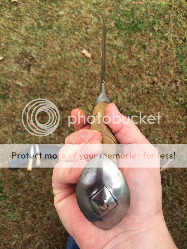 15.5 inch 23 ounce Gopte by Dhan. Epoxy fis crack on Asare wood handle.