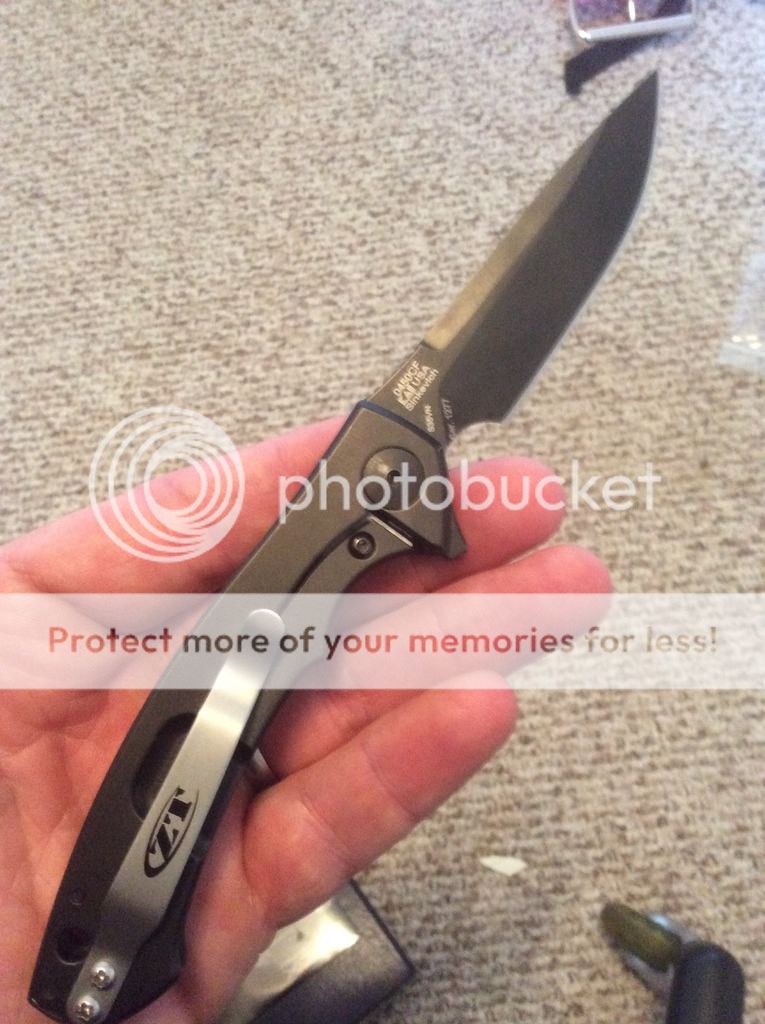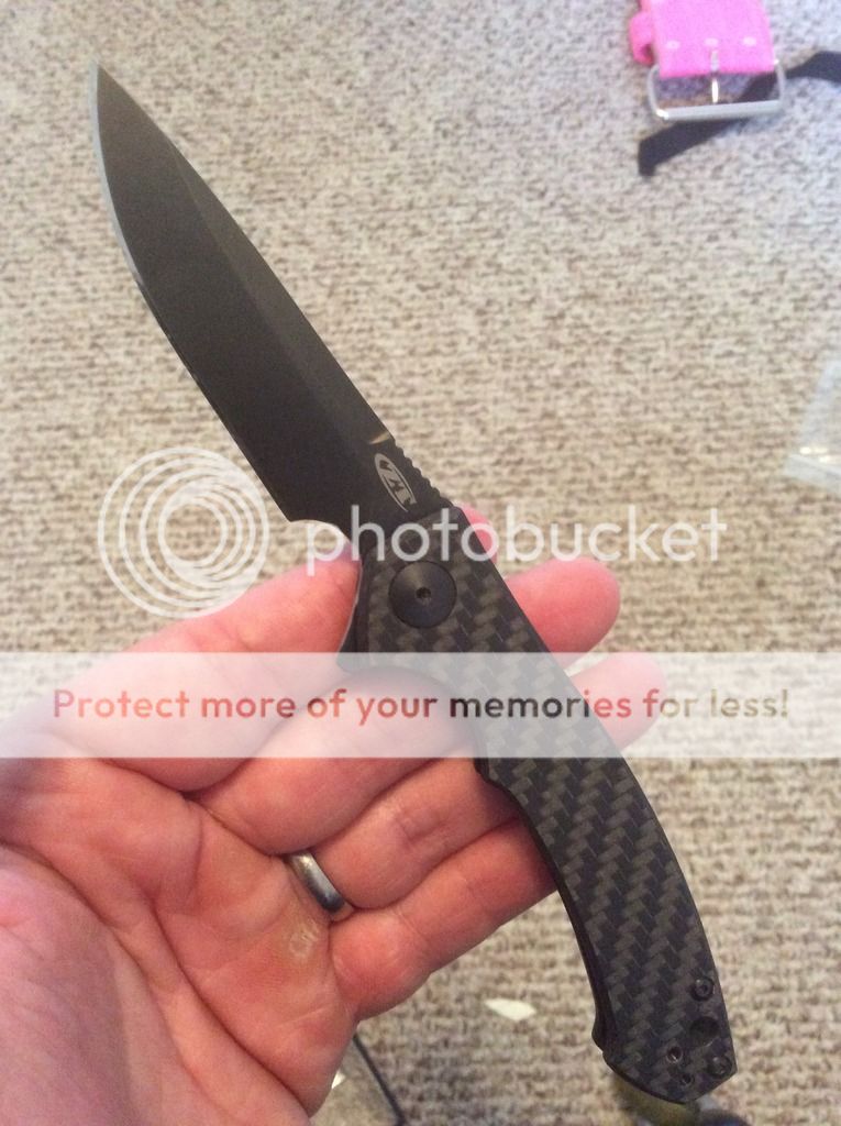 This one has been carried and used some. It has a sweet choil mod that allows the user to choke up on the knife. The pocket clip is brand new. If you want a black one they can be ordered for free from ZT. I just thought this one gave it some good contrast. Flips great! Comes with box and papers. Im asking $old and I pay the Paypal fees and shipping.