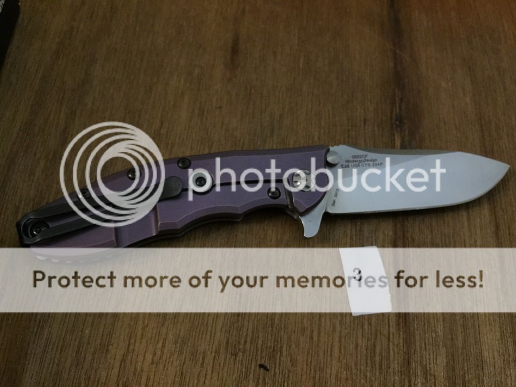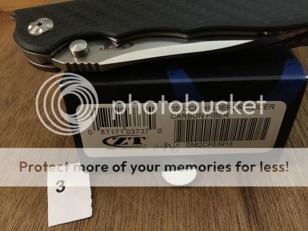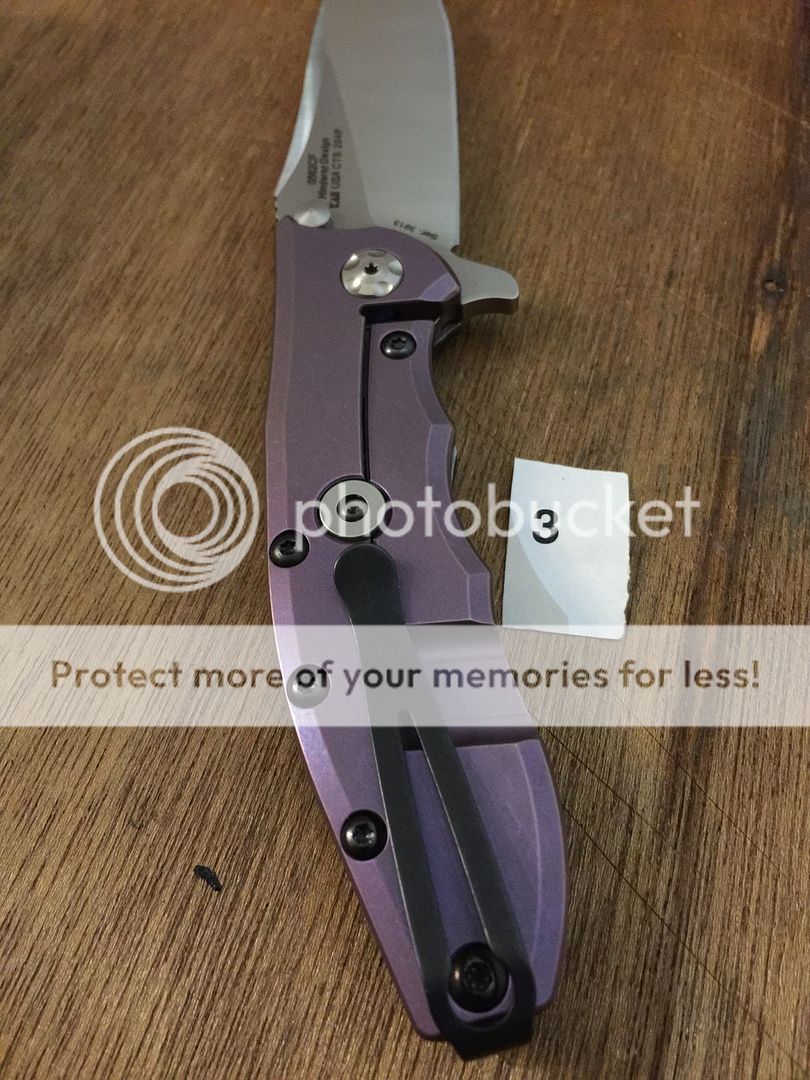 3. ***SOLD ***$185.00 TYD OBO ZT 562 CF CTS204P Anodized Purple. A stunning knife, perfect centering and medium detent. There is slight lock rock when closed, but does not effect the flipping. Has not been sharpened. Comes with box.