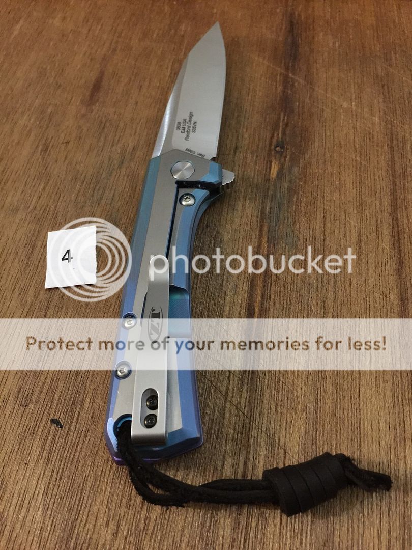 4. ***SOLD ***$155.00 TYD OBO ZT 808 S35VN Anodized blue. Carried but not used. I am the second owner. I did not sharpen this one and it looks like it has the factory edge.