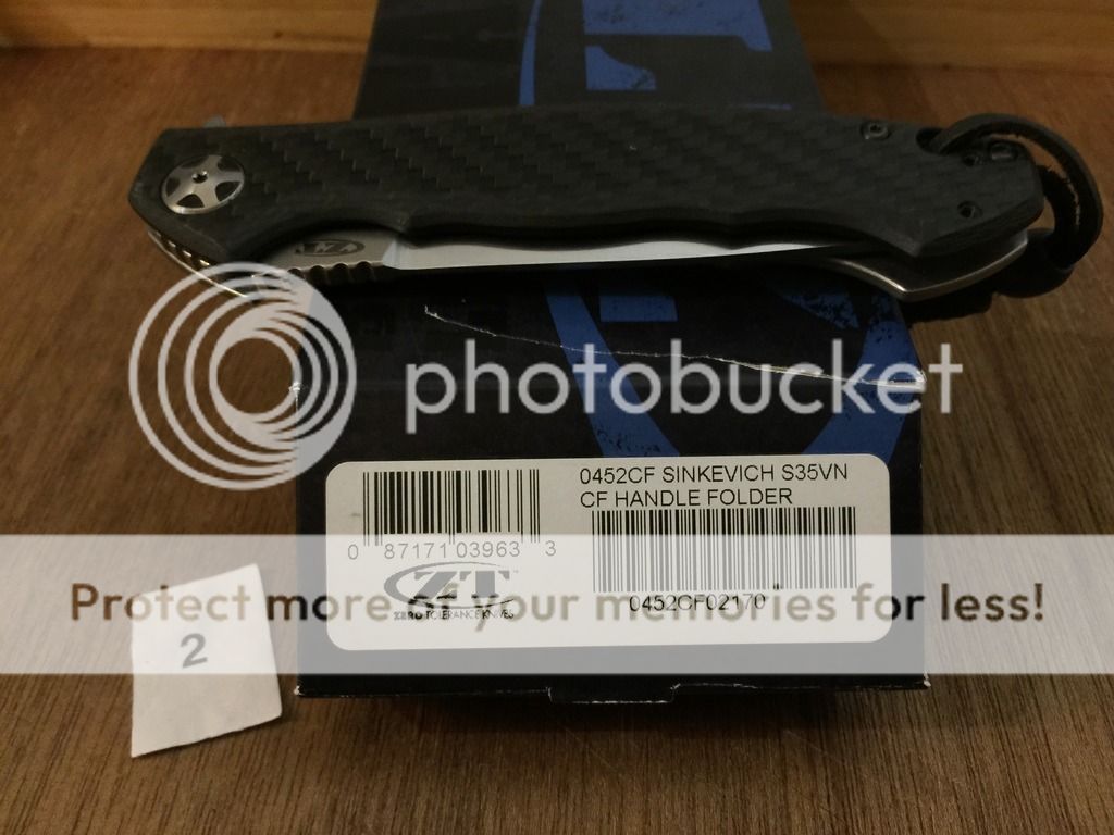 2. ***SOLD ***$175.00 TYD OBO ZT 452CF S35VN Medium detent with smooth flipping. Blade has been sharpened to 17 degrees inclusivesharp. Perfect centering. Comes with lanyard and box.