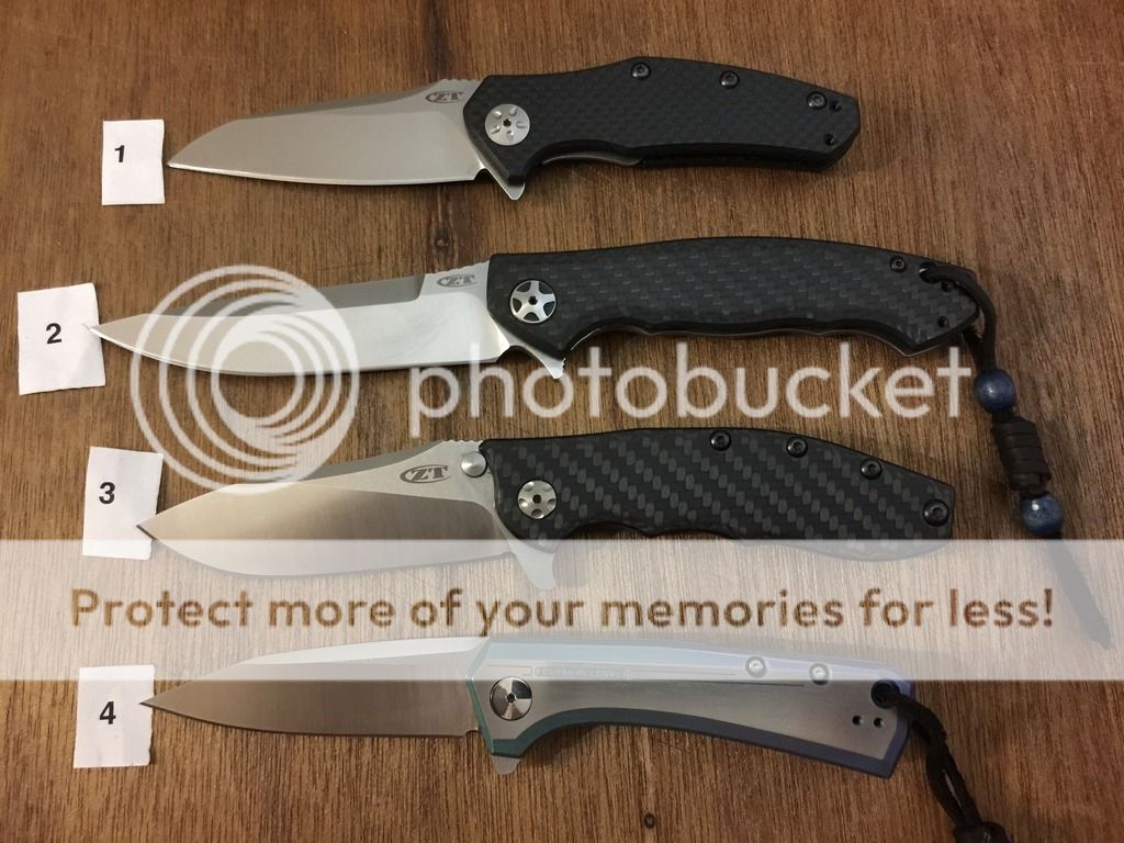 Four premium ZT usersthese are not safe queens, all have been used but not abused and all have some minor scuffs and minor scratches. But they are all terrific knives. See the photos.