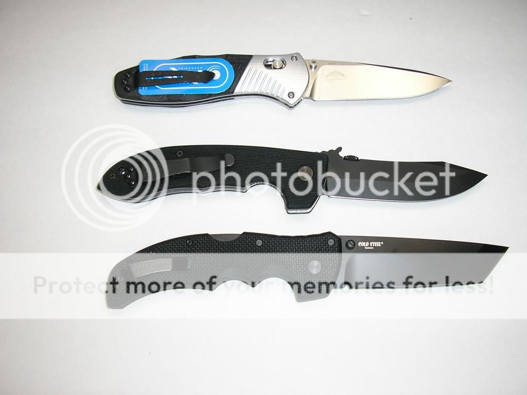 Emerson CQC8BTW. Plain edge, 3.9", 154CM Stainless Steel. SOLD Never carried, sharpened, or cut. I received this knife bnib with lock failure. Emerson has just returned and replaced the lock. No up and down play but has a little side to side blade play that will probably go away when you tighten the pivot. Normal factory pocket clip marks.