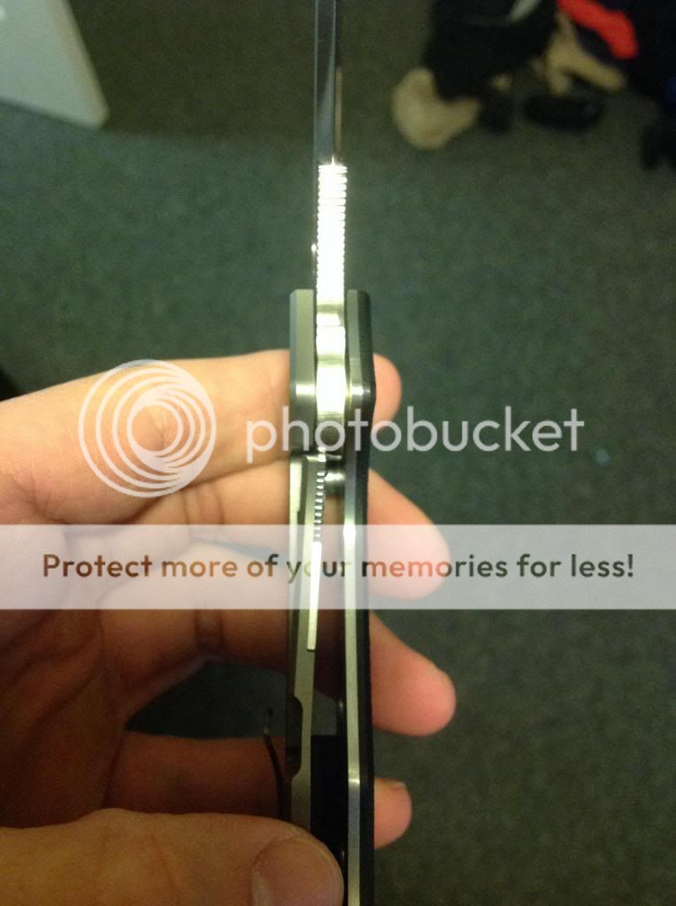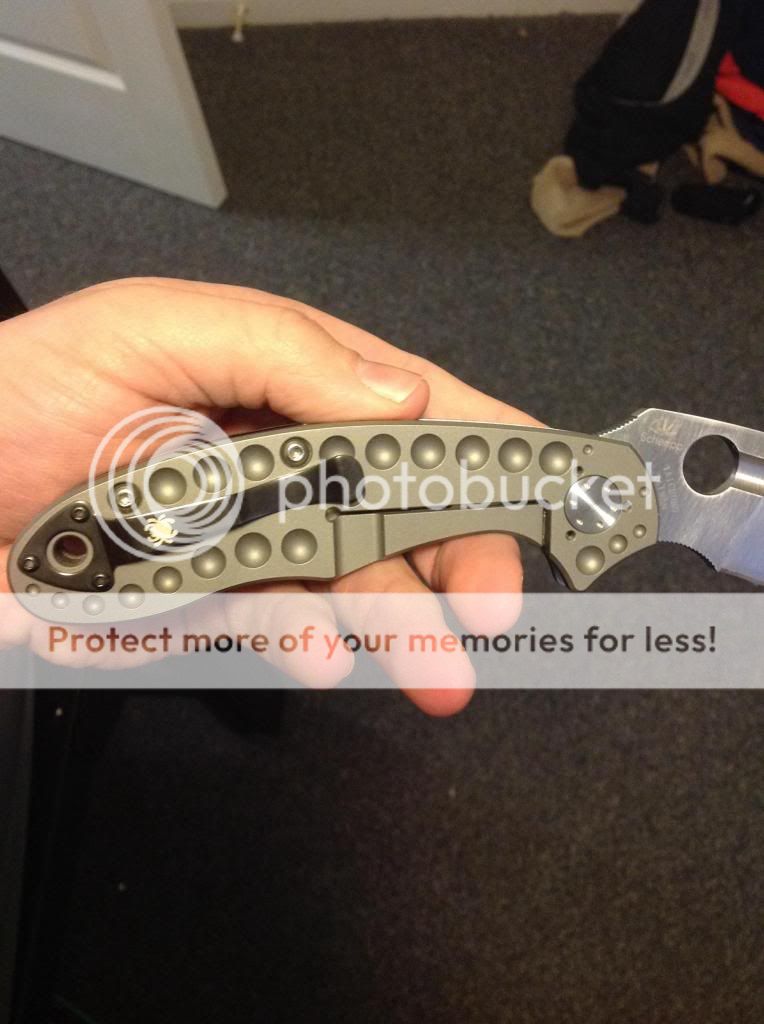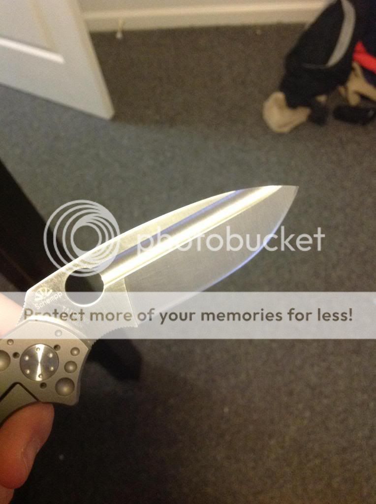 This is the most rock solid folder I have ever felt but it's just a little to big for my taste. The lockup is early with no play in any direction. There are scratches on the blade but the G10 and ti scales don't seem to show any wear. The pocket clip is also in great condition and doesn't show any noticable wear. It has been sharpened on an Edge Pro. It's does come with box and papers. I will be shipping it out today to who ever buys it. I'm asking $180 shipped using Paypal gift or add 3.5%. The first Ill take it in this thread gets it. My email is joshdmoore13@yahoo.com Thanks