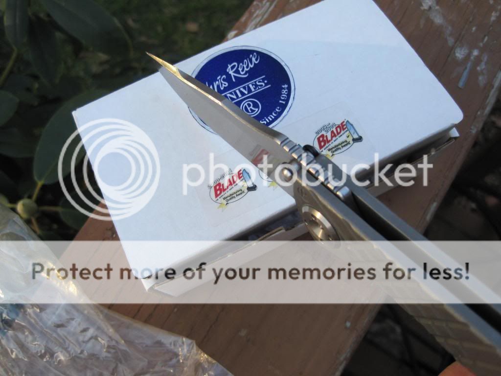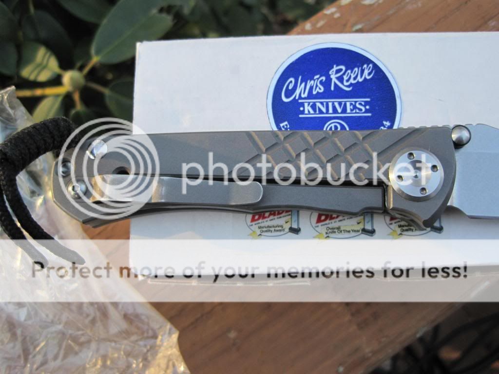 The only wear on the knife is very slightly visible on the edge of the pocket clip. It appears to have been carried but rarely used. The edge is still factory sharp and there are no signs of wear on the S30V plain edge blade or the titanium handle. This knife has a stonewashed S30V drop point blade. It is well centered. Blade length is 3.675", hardness is 58-59 HRC, handle length is 4.77", and weight is 5 oz. It comes with the original box and born-on- date 7-13-09 paper, no warranty paper, tools, etc.