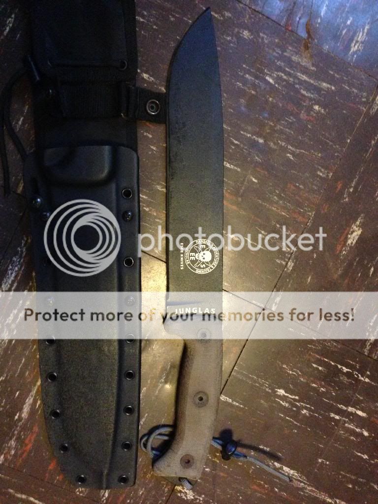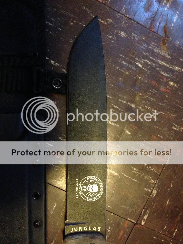 i have for sale a Esee junglas with its original sheath. i have cut up a couple logs with it. it still has its sharp factory edge. no rust on the blade itself. there is a little bit of rust on a couple of the handle screws but its just surface rust.