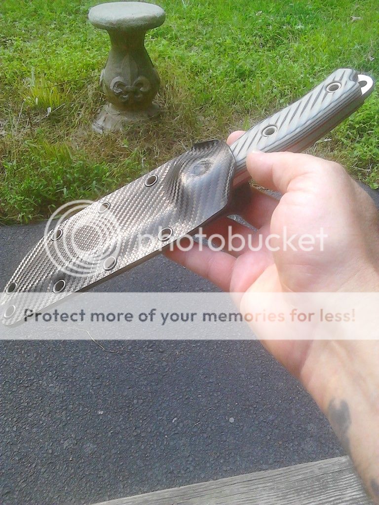 Light used SWAT Blk/Tan G-10 w/ Red Liners. Comes w/ sheath, set up for the Esee 4 back. Esee back not included. Withdrawn