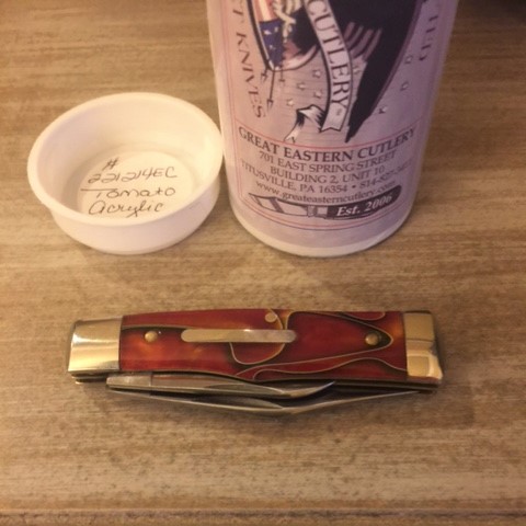 For Sale: GEC #22 Magnum First "I'll take it" with prompt message and payment will receive. Price includes PayPal fees and shipping to US Cont Lower 48 (only). GEC #221214 in Tomato Acrylic This little knife is a "user" but still in excellent shape, priced accordingly... $120.00