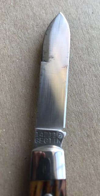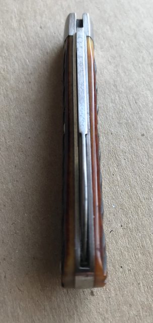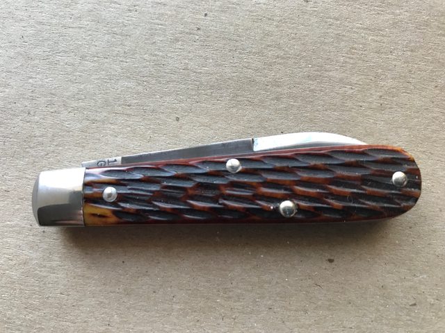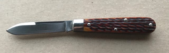 142116 Autumn Gold Jig Bone - $65 SOLD (this knife was heavily used by a previous owner and shows quite a bit of staining on the blade and other metal parts. It's a fine little user though)