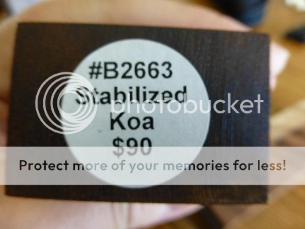 "Heirloom Crushed Velvet Koa" super nice. Ironwood is about "5 x "1 3/4 x "1 3/16 $45 shipped