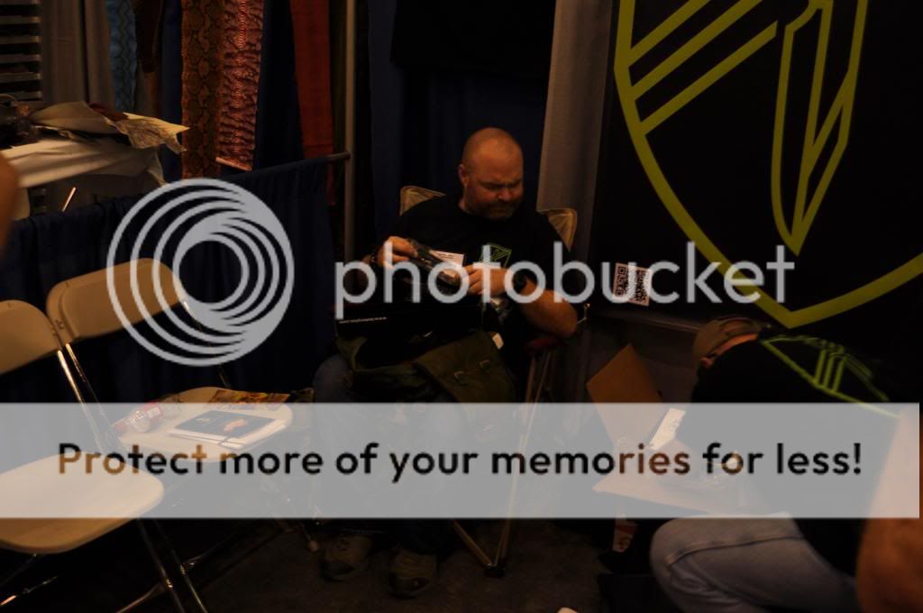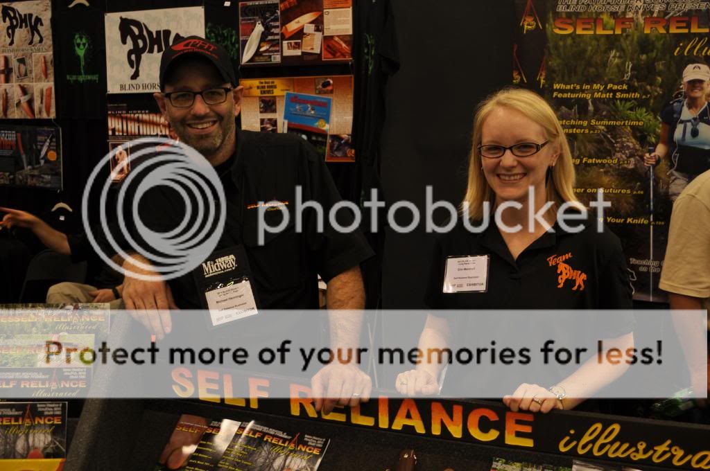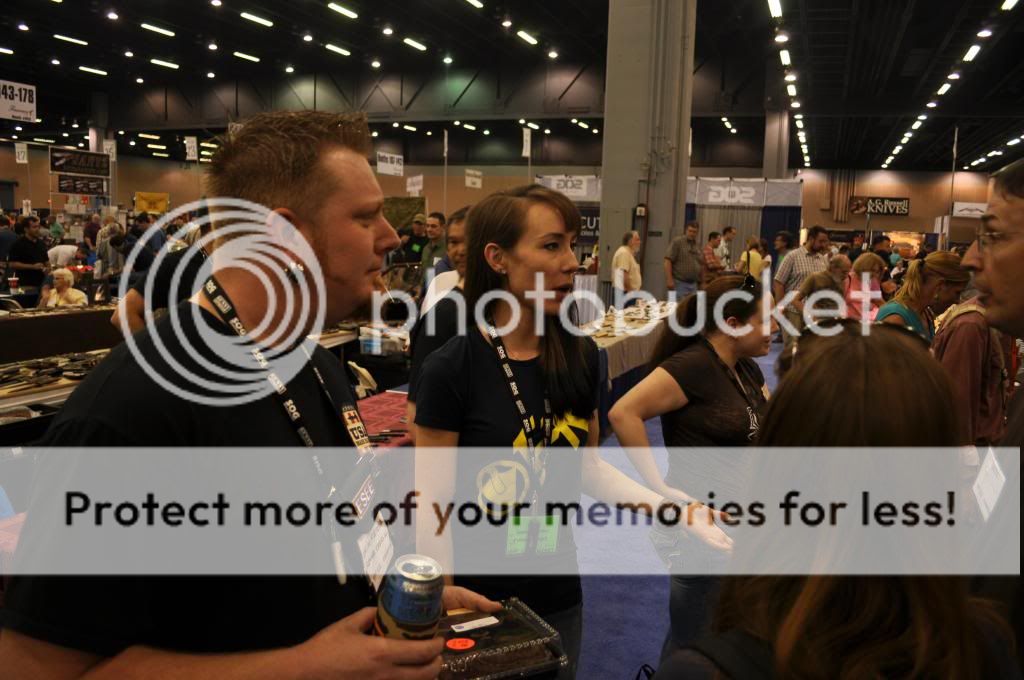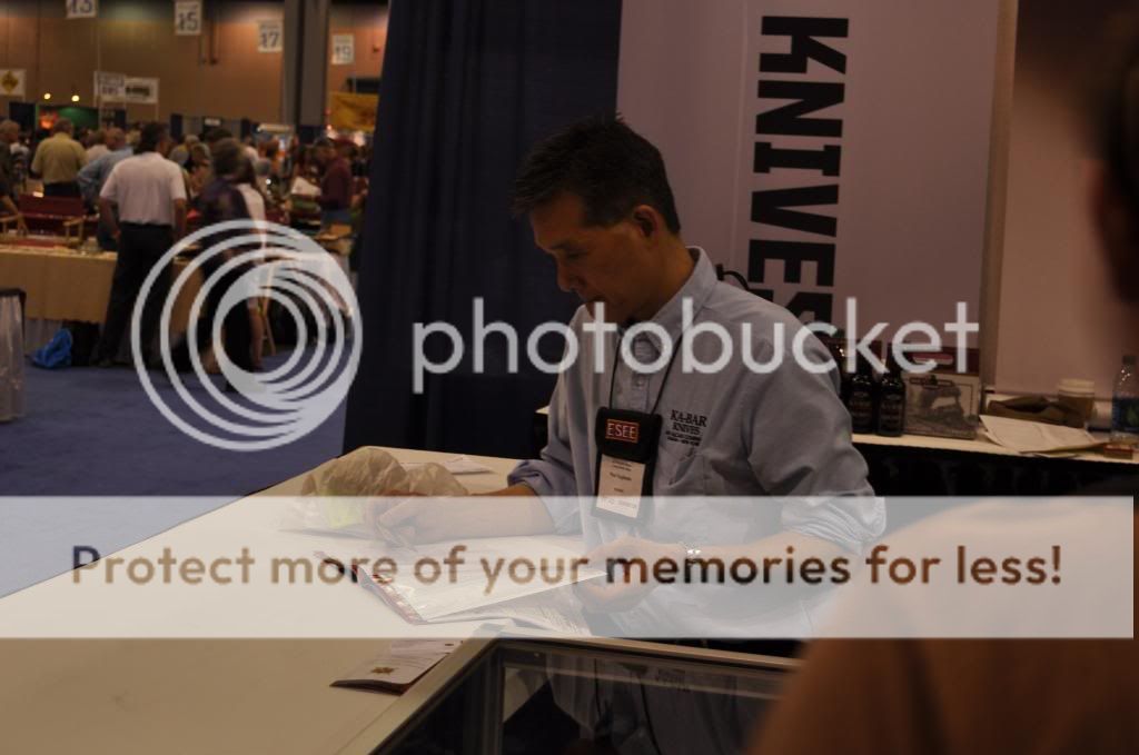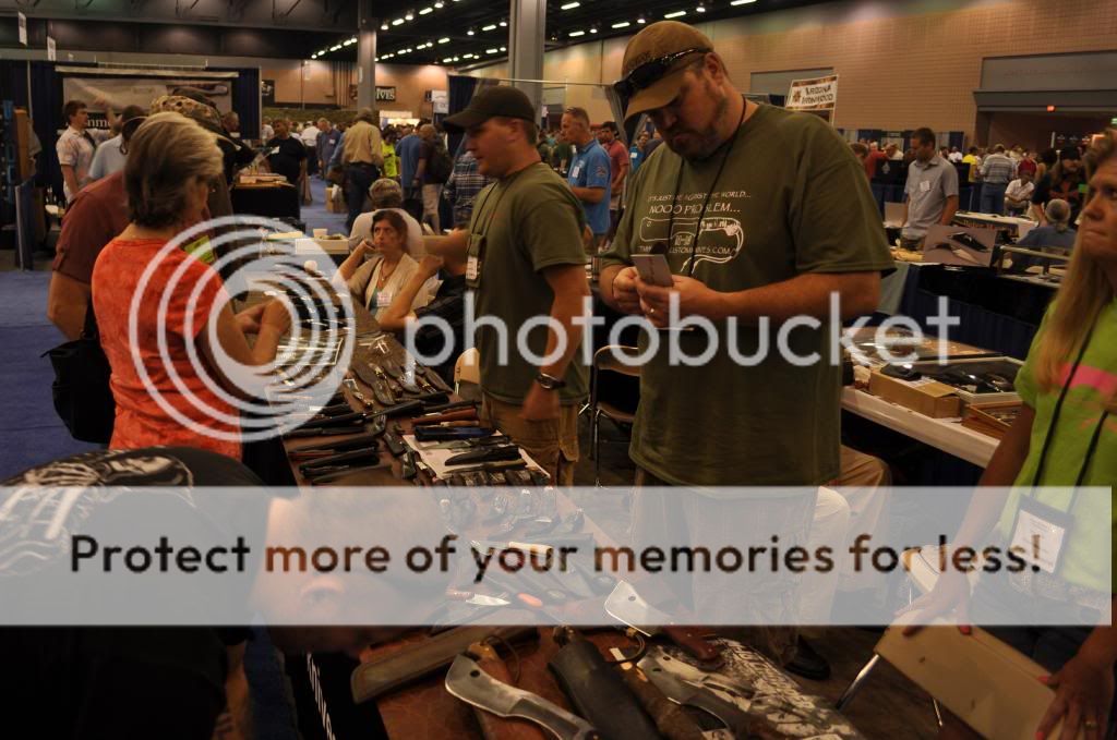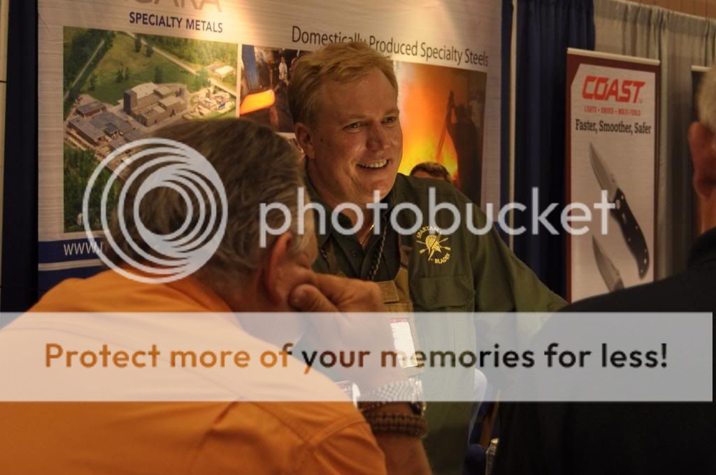 I thought I'd post some photos from Blade Show 2013. The show this year was a whole lot of awesome (as usual) sprinkled with surprises. Some of the surprises were fantastic, one bordered on the surreal. It was great getting to see old friends and colleagues I don't get to hang out with very often. It was also great making the acquaintance of new friends. One of the fantastic surprises was a cool new collaboration prototype that I will be testing privately for a knife maker I will not name. It's funny because I have been instructed to post no photos of a knife made for testing because the knife is not up to the maker's normal high standards....yet the knife still has more time, effort, and craftsmanship put into it than many knives I regularly see offered for sale. The surprise that really bordered on the surreal was to have one of my favorite knife makers walk up and show me a knife that I loved, but had given to an individual on BF in a give away because it was obvious he needed a good field knife from his photos. I had been inspired by my friend Rotte to take a higher road in give-aways. The maker recovered the knife from another individual who bought it off ebay. This gives me pause for thought and will definitely factor heavily in future give-aways, considering the conversations with the individual at the time of the give away and a few afterward. I will put a lot more thought into the next one.