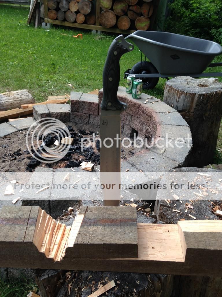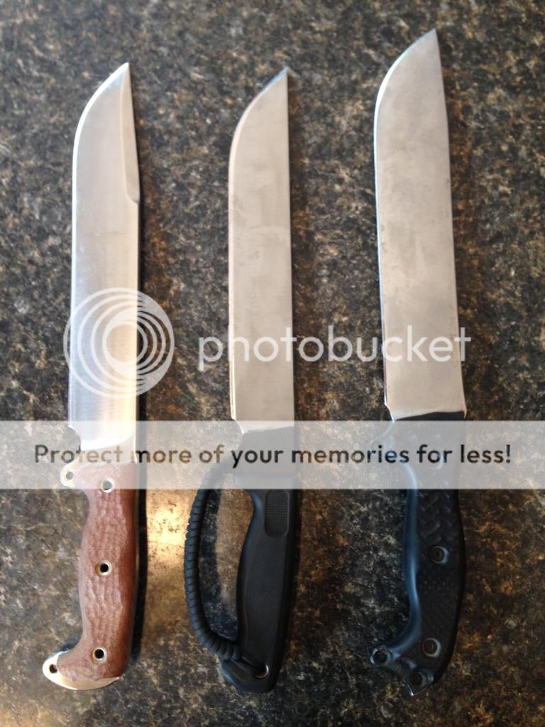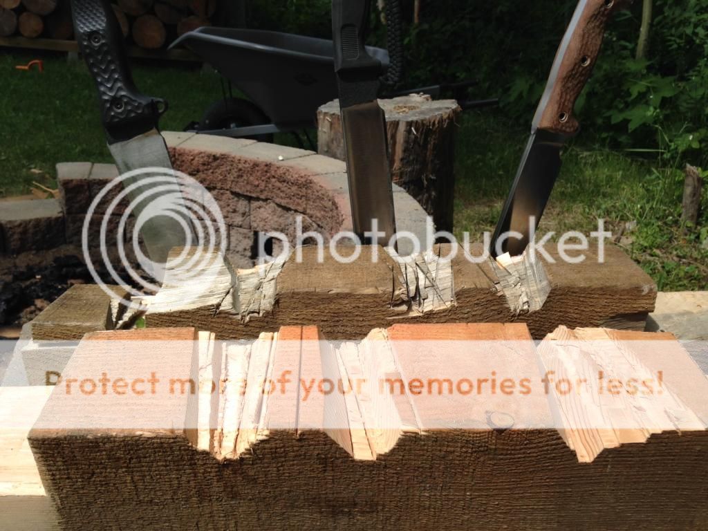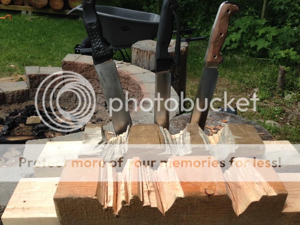 Our conclusion was that they are all pretty even at the 50 swing mark. The thickness of the NMFBM starts to hamper it at that point IMO, but a zero edge would probably bring it clearly into the lead. But it is nearly a pound heavier than the B11, and almost a half pound more than the ASHBM (granted it might be a bit lighter than an LE or CG due to the swedge, but it's what I have). The NMFBM definitely hits harder, but I'd rather carry another knife along with my B11 or ASHBM for the same weight as the NMFBM.