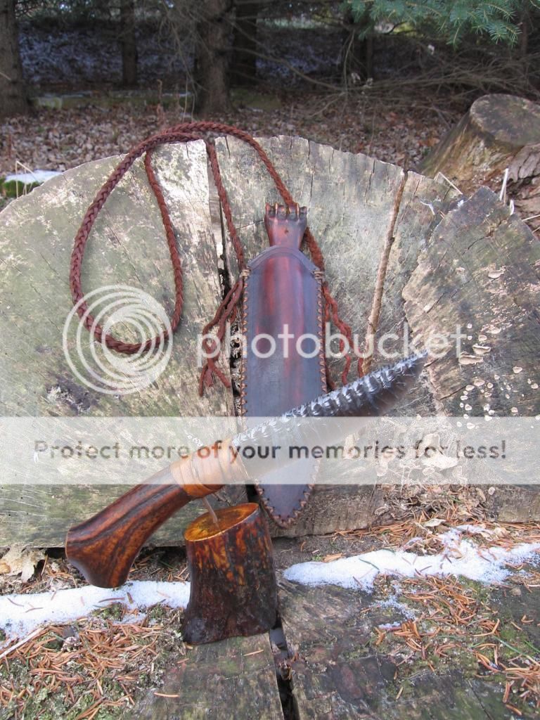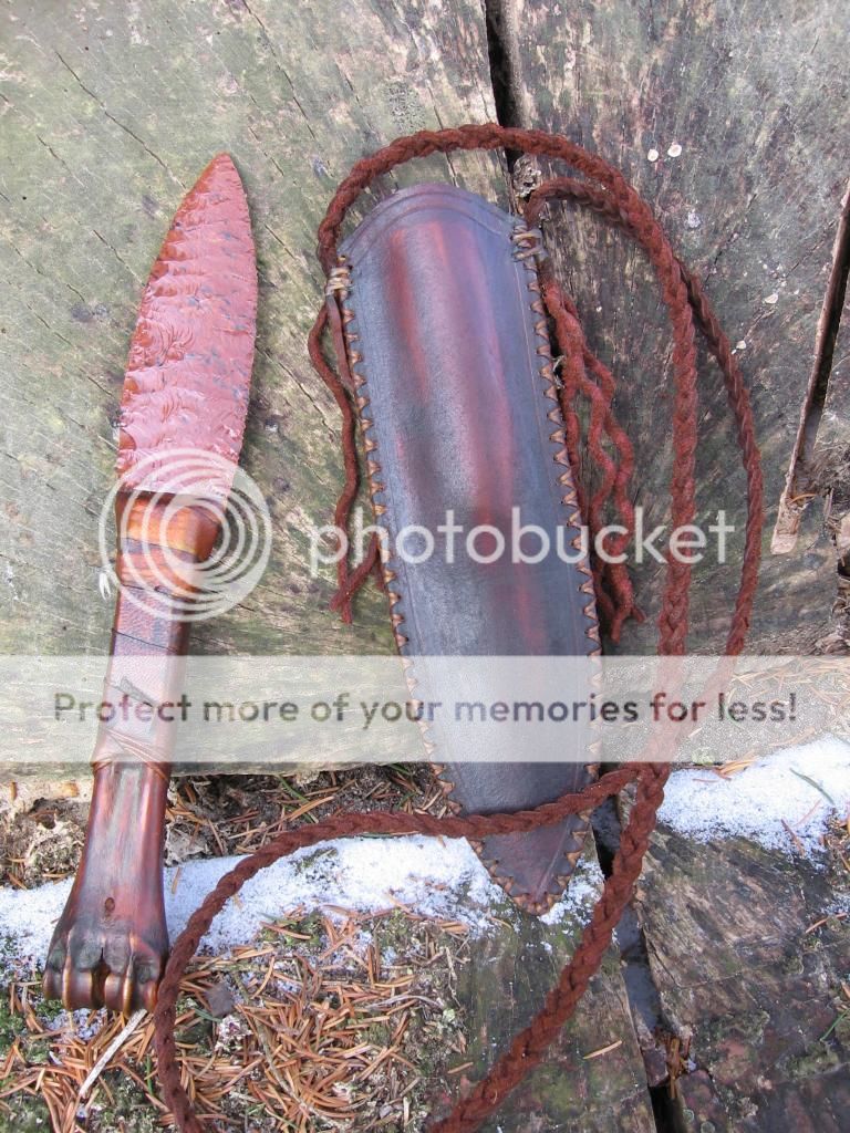 So I bought a few blades from a very good maker and put them together. White tail handles, leg bone and antler, tied with real sinue then wrapped in rawhide. The blades are banded and mahogany obsidian.