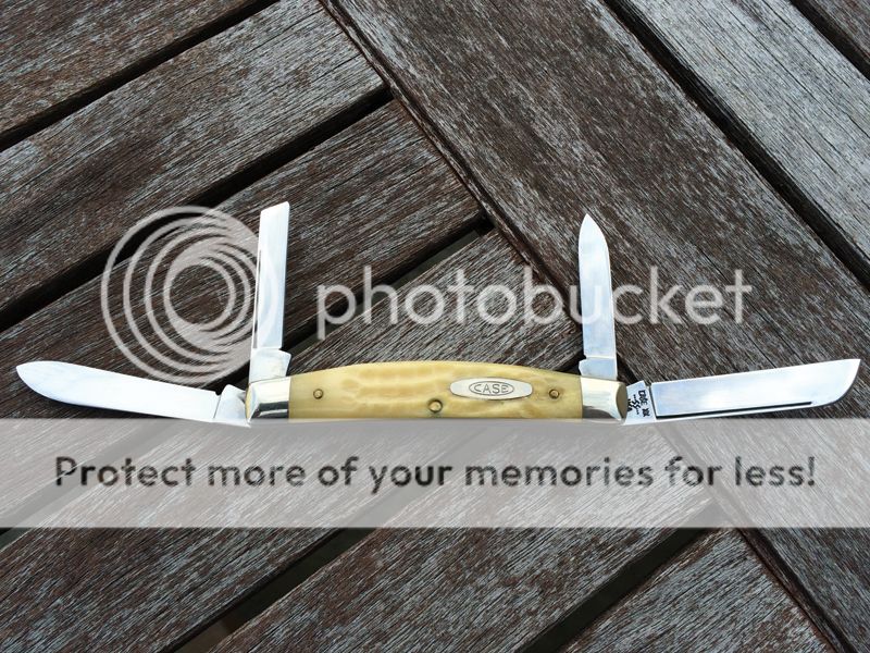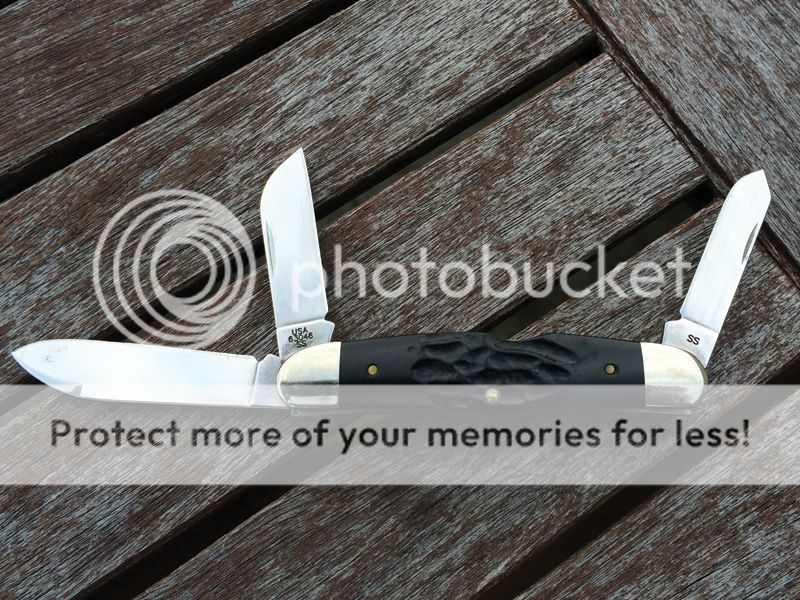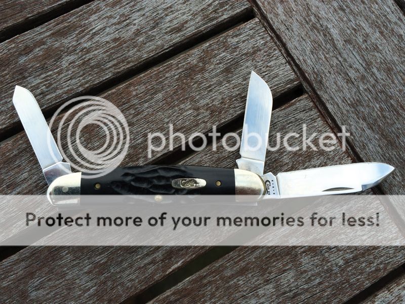 Here's a Case Humback Stockman with jigged synthetic covers and SS steel. I carried this one for a while and it still looks relatively new. It has good f&f and is a nice edc, perfect for whatever you have to do throughout a day... May need a good sharpening, I never sharpened it. I do have the original box for this one.