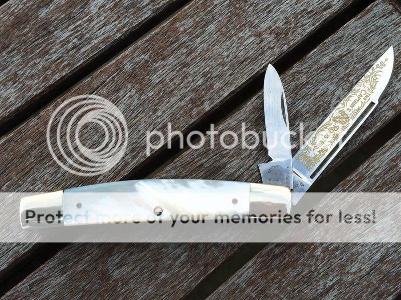 Covers are jigged greenbone and look a lot like the greenbone of old. There are some spider veins on the spines of the blades and the f&f isn't perfect. It does have great snap and is super sharp. These were a limited run of 250 in 1997, no box or paperwork included. Never used, carried, or sharpened.