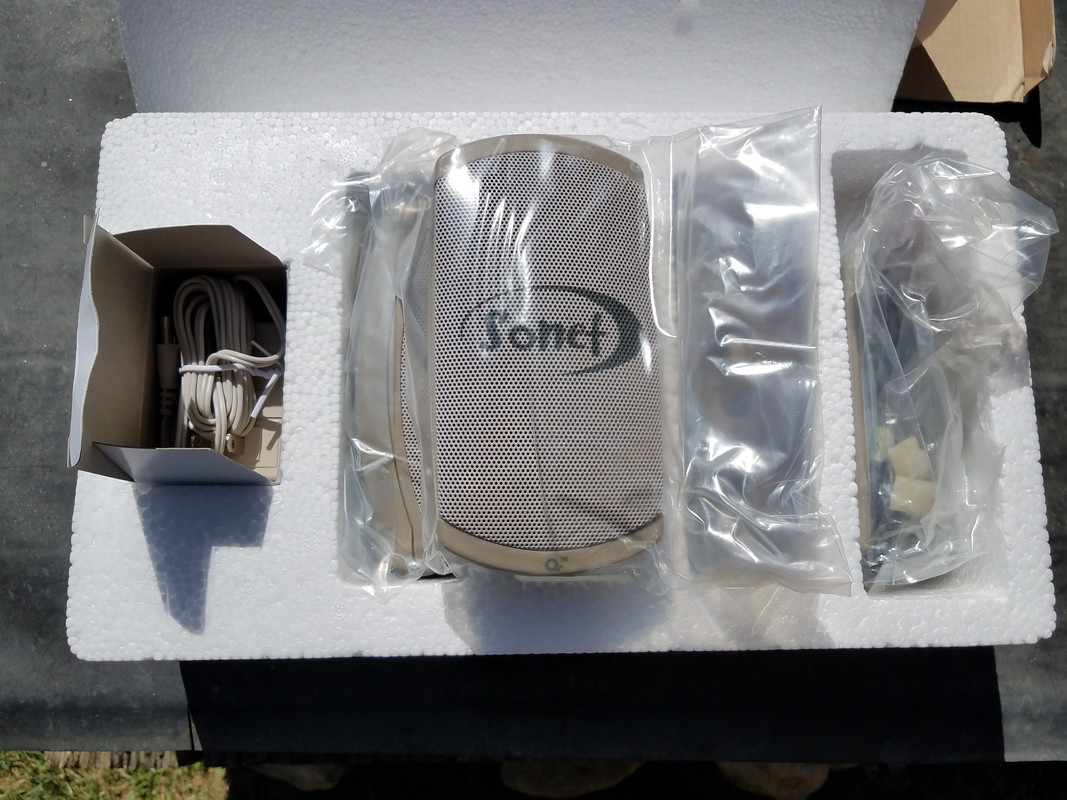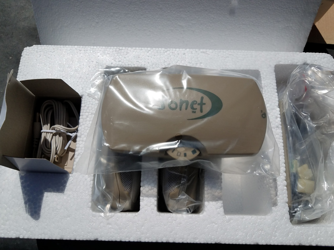 I use one just like this one to help me sleep better at night due to my Tinnitus. You'll get the transmitter and 2 satellite speakers with all cordage. You also get some panels to mount the unit and speakers to a fabric cubical wall.