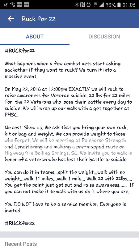 Anyone in the South Carolina area looking to do some good, free of charge, to raise awareness for suicide in the military, a buddy of mine, an army officer (who started out an enlisted infantry grunt like me) organized this great event going on in May.