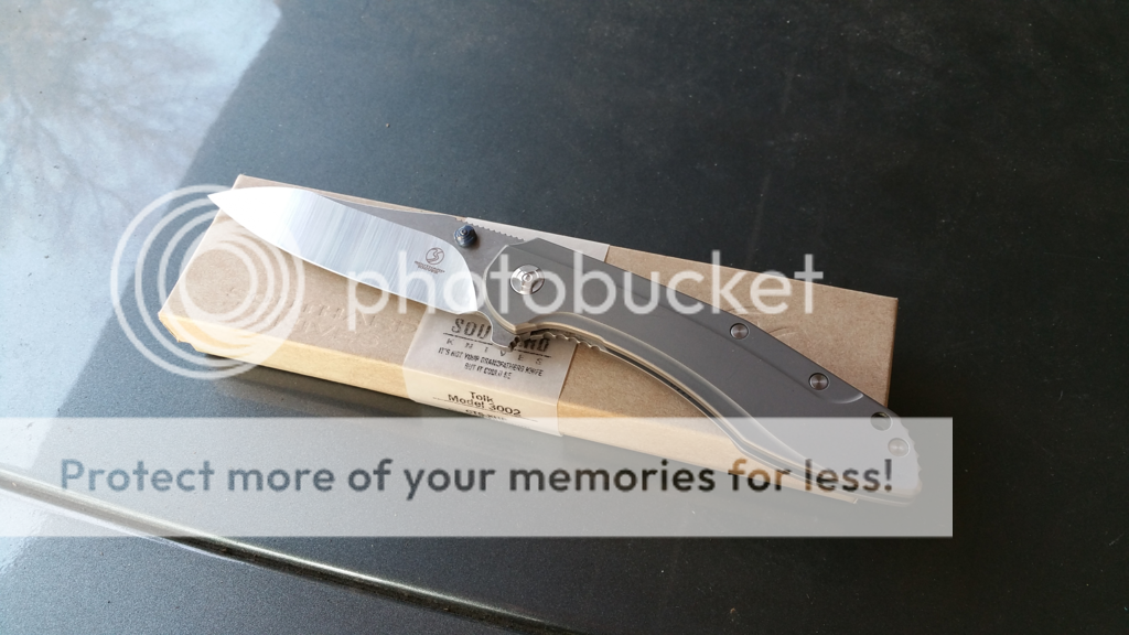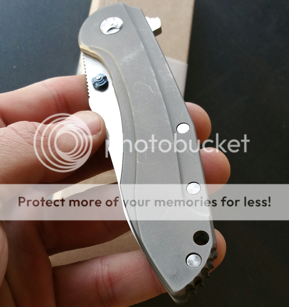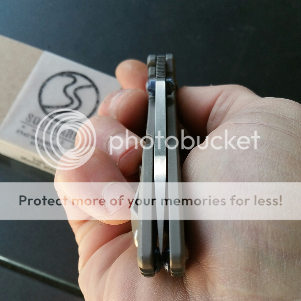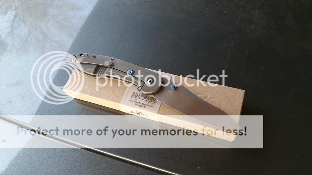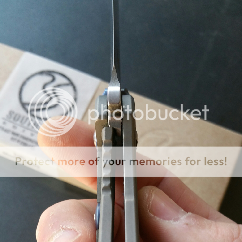 For sale: Southard Tolk. I've carried it and rarely used it...mainly cutting mail open, no hard use. It's centered, solid, and smooth. It fires out with authority using the flipper, thumbstud, or back-finger-flick. Some snail trails on the show side, that's the way I bought it from a guy in Instagram...I like the way it looks to be honest. I haven't sharpened it, but it's definitely sharp. I added the blue anodized pivot collar to spruce 'er up a bit. Overall, it's a great knife...I might say it's my favorite knife that I've owned (and I've had a few customs)...just a great EDC. I tried to put a video of it underneath the pics...otherwise, check it out on Instagram I'm @mountnormal CONUS ONLY, NO TRADES, PayPal only. $375 net to me. (I paid $385 and added the $15 collar) I'll cover standard shipping.