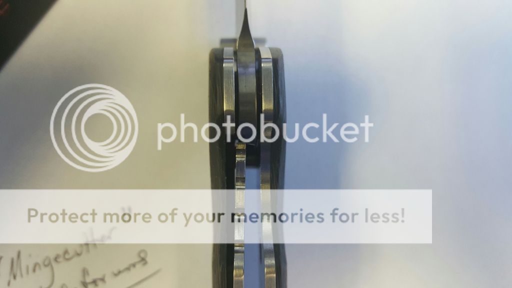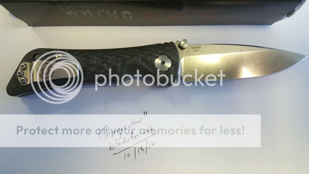 I've got my eye on something else, so my Southern Grind Spider Monkey is up for sale today. Carbon fiber, stonewash, drop point, plain edge version. It's in excellent overall condition -- I carried once or twice but cut nothing more than paper. Shaving sharp, free dropper, tight lockup, and locks up early at roughly 35% or so. It's a nice example. Box, cards, etc. included. Pics taken yesterday, please see below.