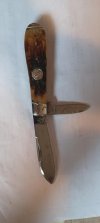 Here is a Colt marked knife. Both of the blades are marked Colt. It also has a Colt medallion on one side that is marked 175th. The knife has been carried some, with no real wear on the exterior. The blades do have some sharpening marks on them. It has stag scales as shown.