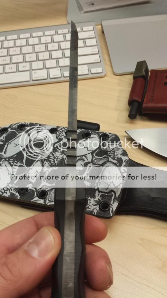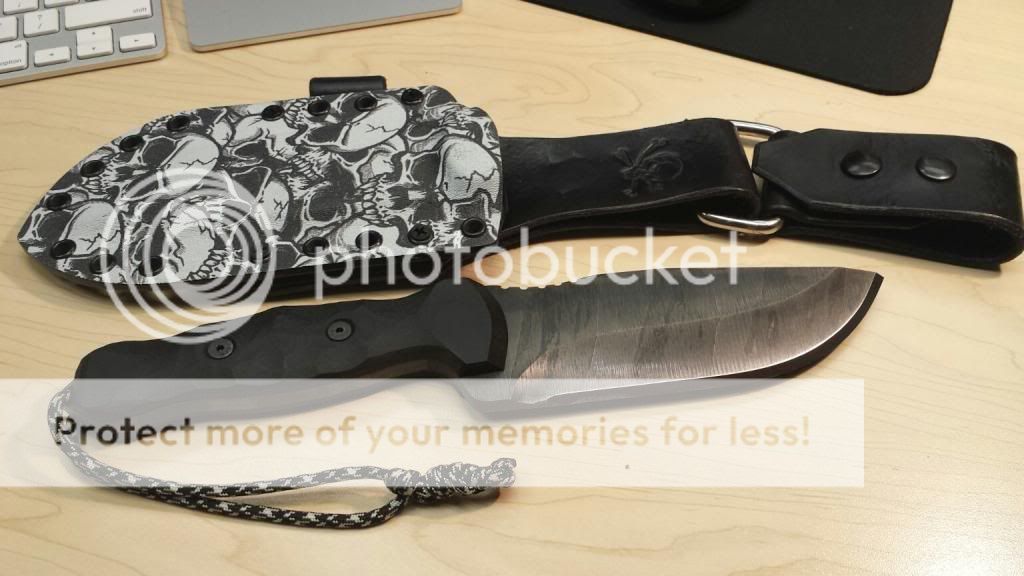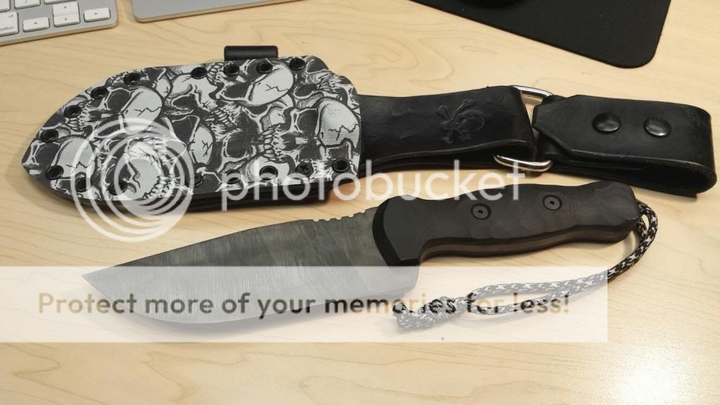 Got it from Blade show 2013 never used super beefy tank built for use and survival! Don't buy it if you don't like hearty blades. It comes with a 710 Custom Sheaths black leather dangler package with fire steel holder.
